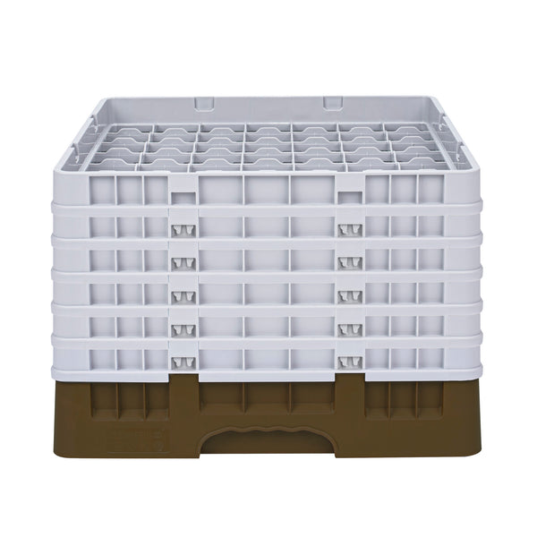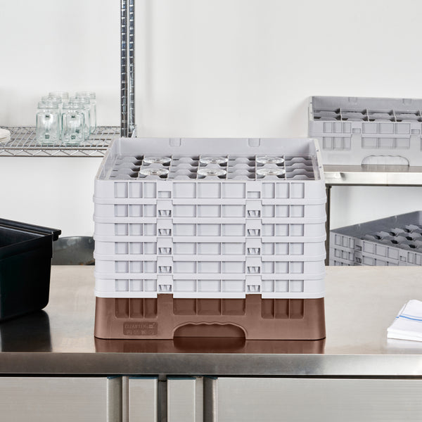Clean Tek Professional Brown Glass Rack - 49 Compartments, 1 Full Drop and 5 Half Drop Extenders - 19 3/4