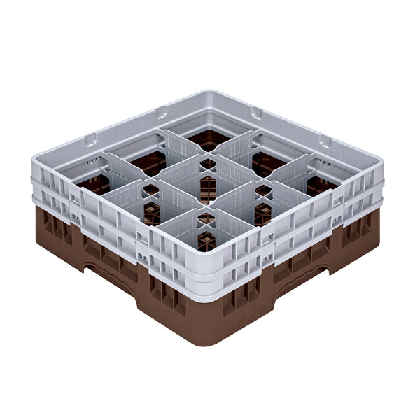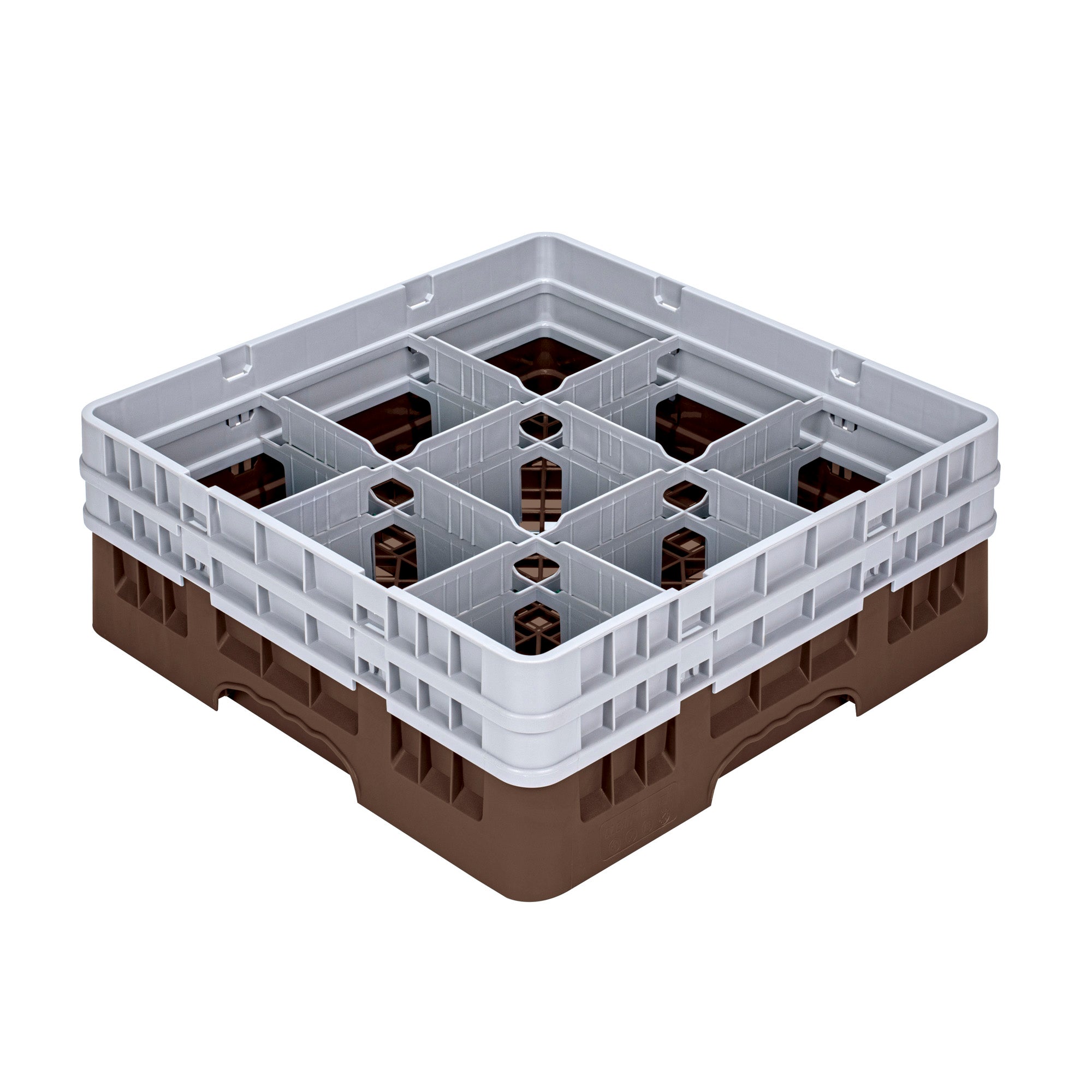 Clean Tek Professional Brown Glass Rack - 9 Compartments, 1 Full Drop and 1 Half Drop Extender - 19 3/4