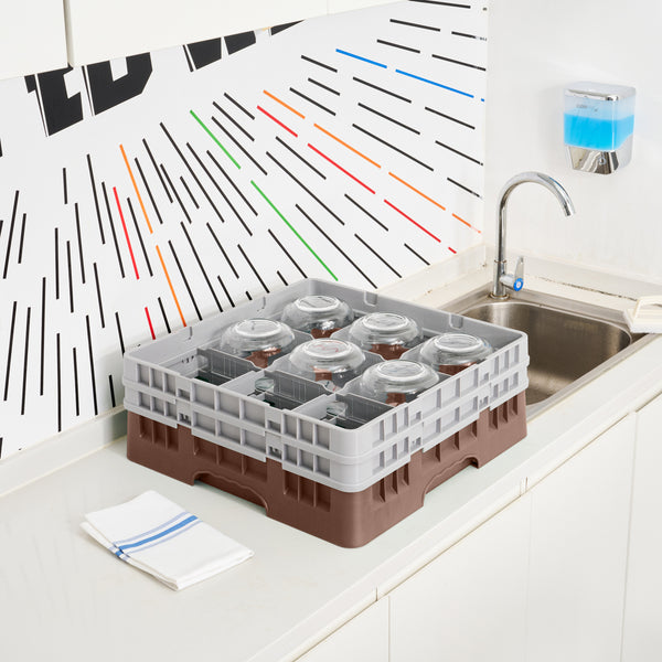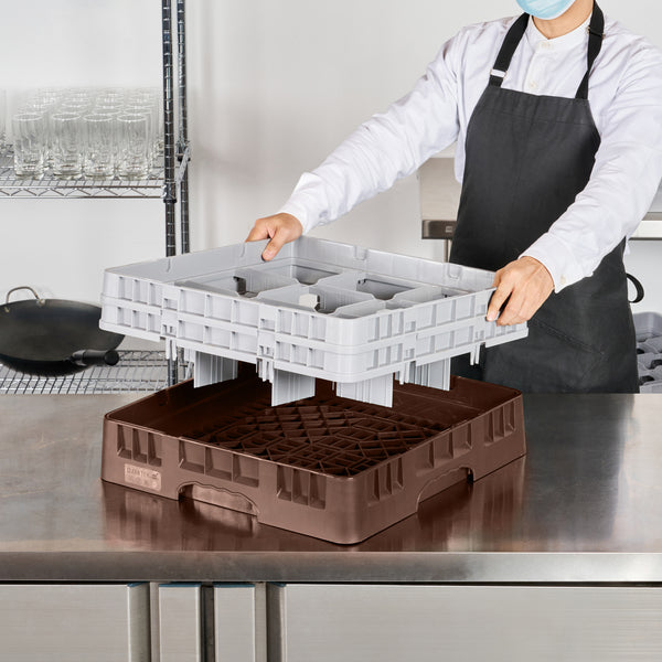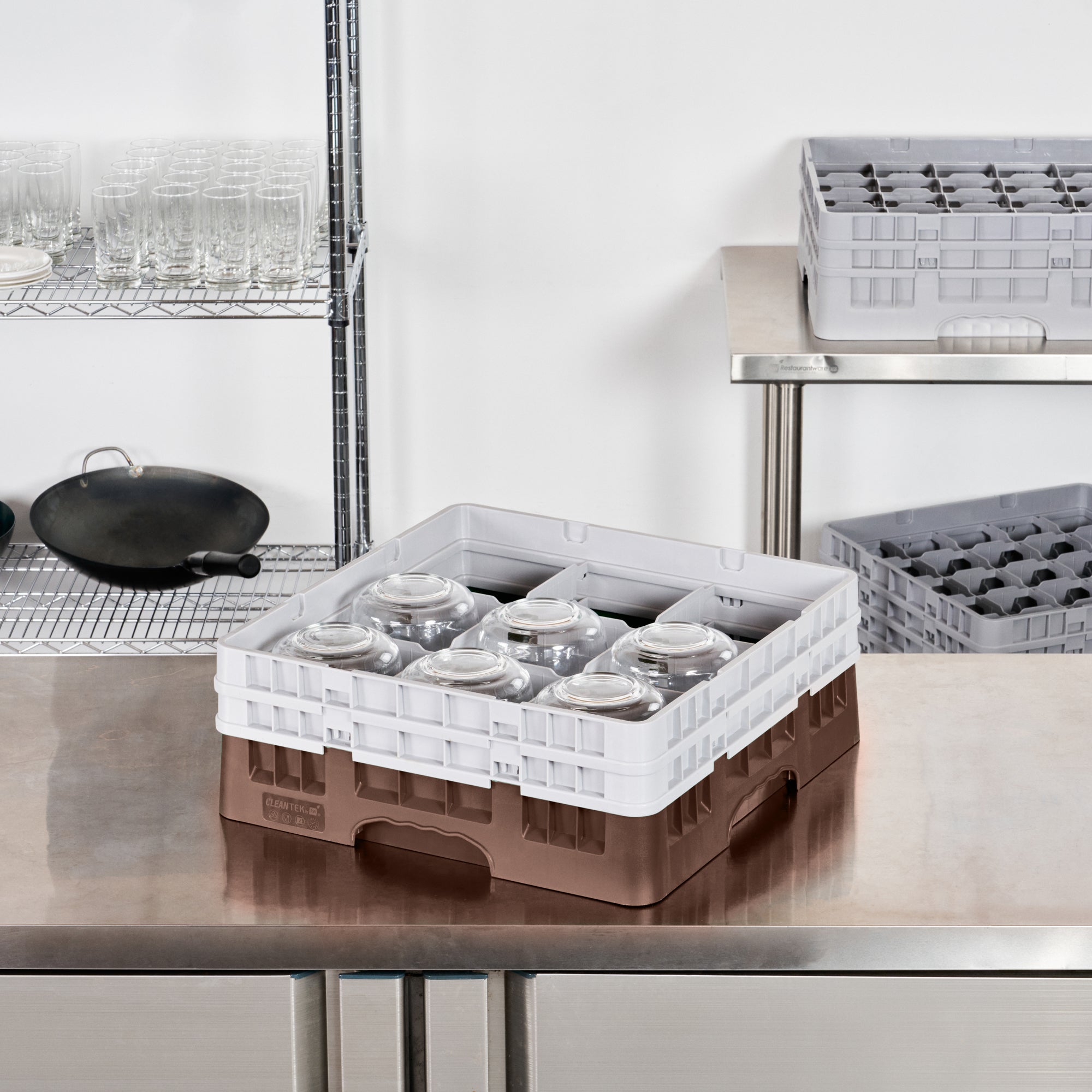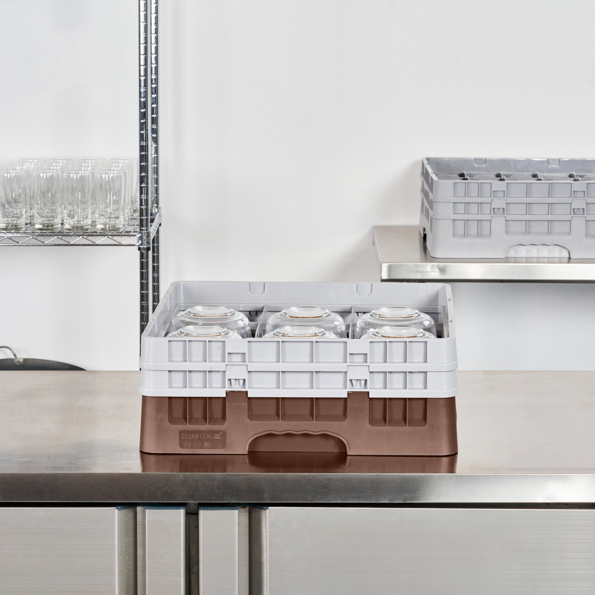 Optimize your glassware storage with our Clean Tek Professional Brown Glass Rack. This glass rack features 9 compartments, ensuring safe and organized storage for your valuable glassware. Designed as a dishwasher rack, this glass rack makes the cleaning process efficient and hassle-free. Equipped with 1 full drop extender, this rack can accommodate taller glasses, enhancing their versatility. The inclusion of 1 half drop extender adds further flexibility to this compartment rack, allowing for a mix of glass sizes. Constructed from durable PP, this commercial glass rack is built to withstand the demands of busy foodservice settings. The easy-to-handle design makes transporting and storing your barware organizer a breeze. Open interior compartments enable quick drying and easy access, while solid external walls provide robust protection. Measuring 19.69 inches in length by 19.69 inches in width by 7.24 inches in height, this glass rack offers ample space to secure your glassware. Sold in a 1 count box.