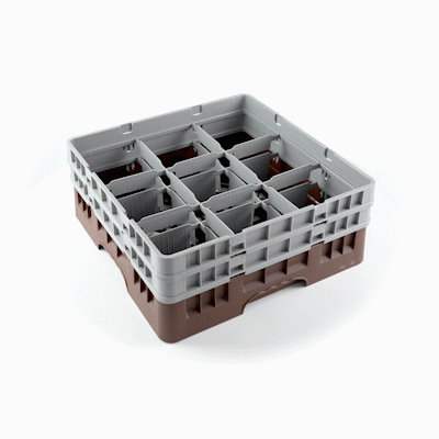 BROWN GLASS RACK - 9 COMPARTMENTS, 1 FULL AND 1 HALF DROP EXTENDER
