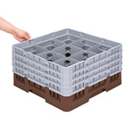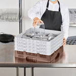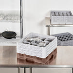 Clean Tek Professional Brown Glass Rack - 9 Compartments, 1 Full Drop and 3 Half Drop Extenders - 19 3/4