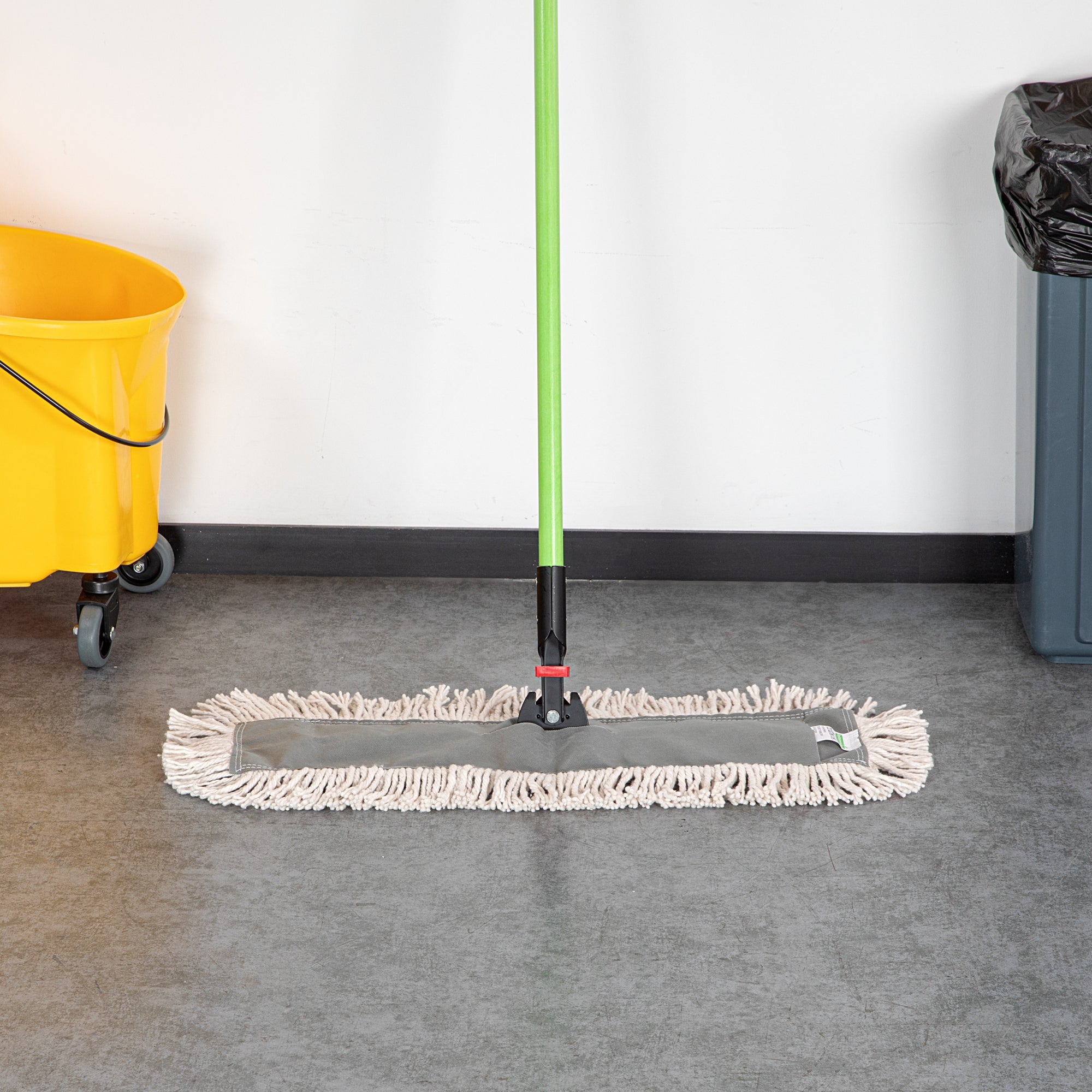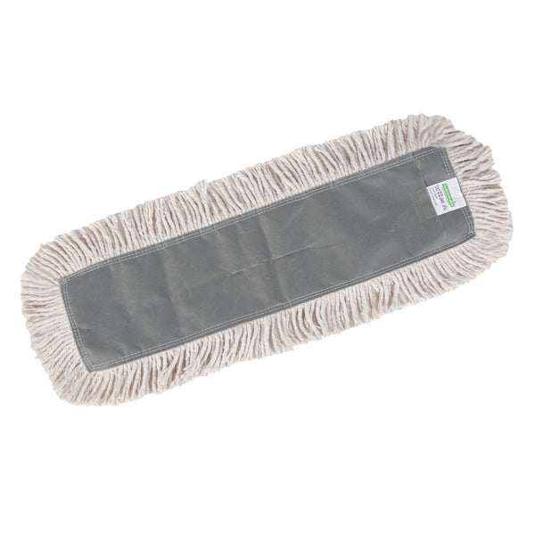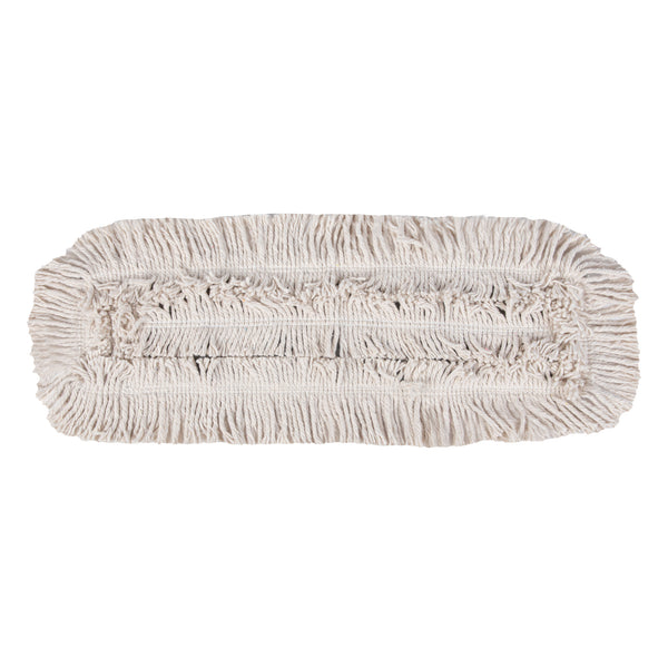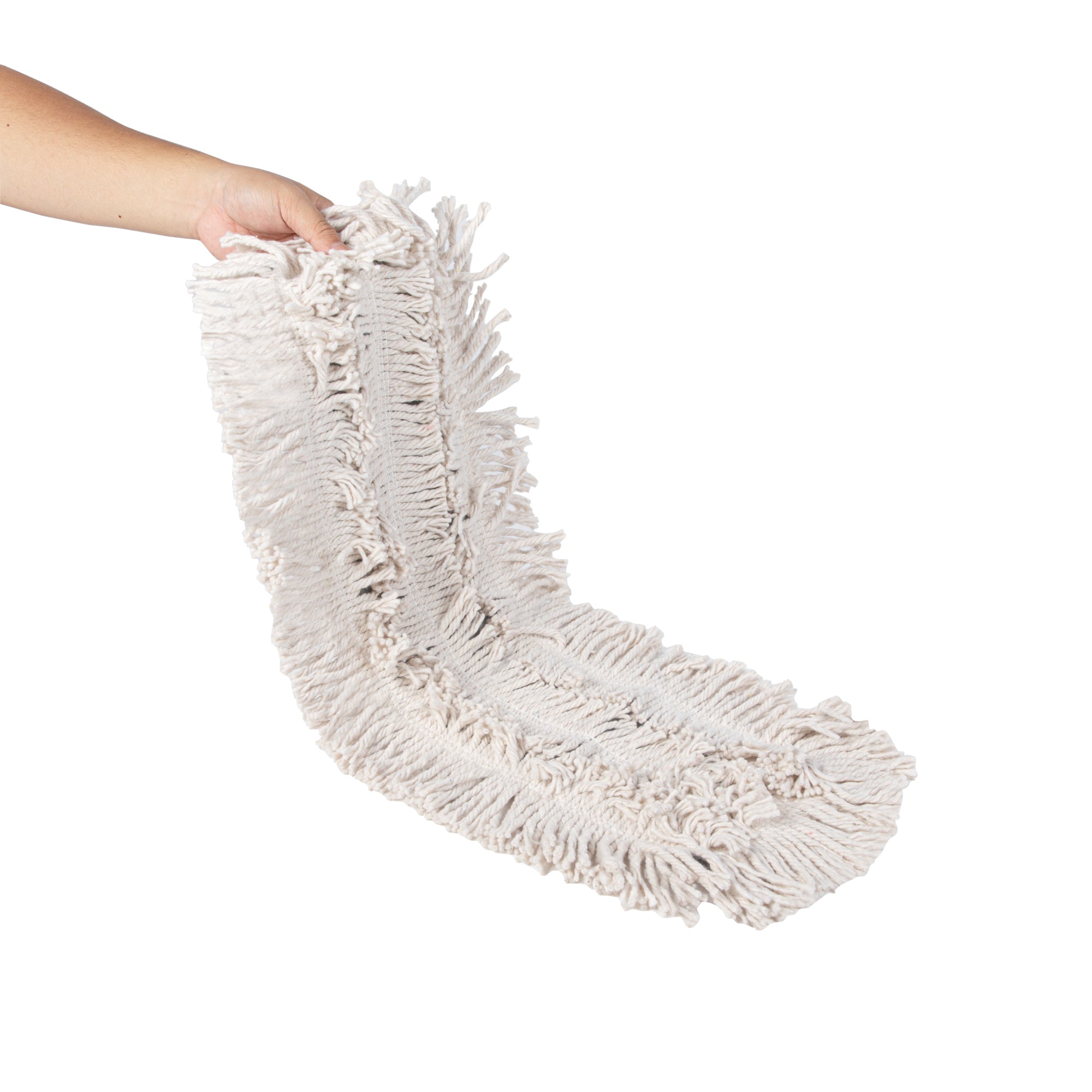 Ensure your floors are spotless with our Clean Tek Professional Cotton Dry Dust Mop Head. Pair this dry mop pad with a matching mop frame (SKU: RWT1818B, RWT1816G, and RWT1817K) for an efficient cleaning solution that delivers an excellent cleaning experience. Made from premium cotton yarn, this dust mop head efficiently whisks away and retains dust and dirt, allowing you to clean floors faster. This wide dust mop securely attaches to the mop frame and firmly stays in place while you work, providing reliable performance. Offering commercial-grade durability, this dry mop head is ideal for busy foodservice environments. This cotton dust mop head is disposable and allows you to clean your floors quickly and discard the dirty mop head afterward without worrying about storage or maintenance. Measuring 24 inches in length by 5 inches in width, this commercial dust mop head covers a large surface area for quicker cleaning. Sold in a 1 count box. Mop frame is available and sold separately.