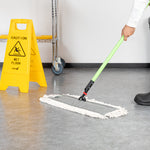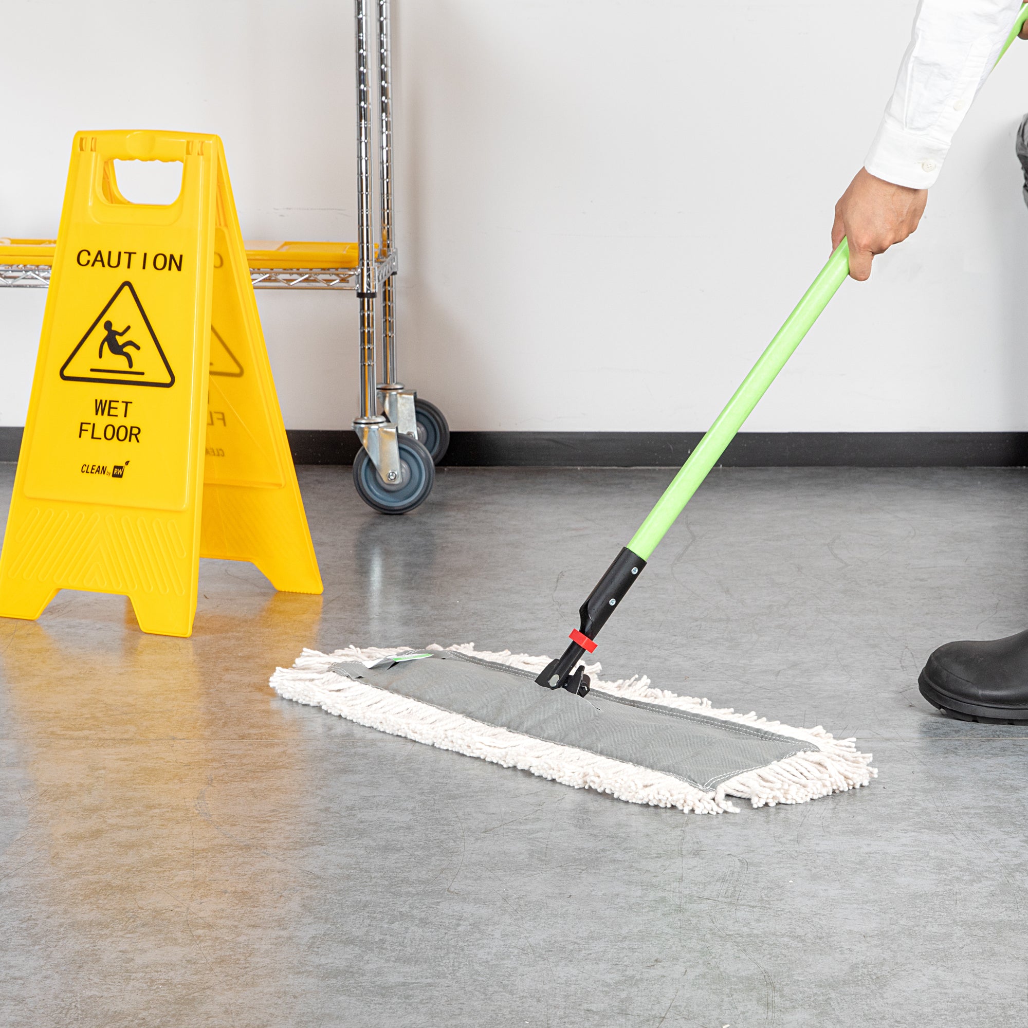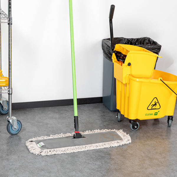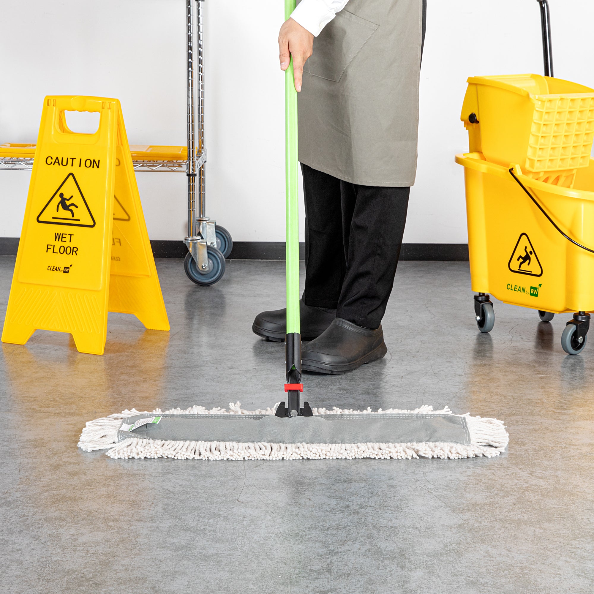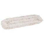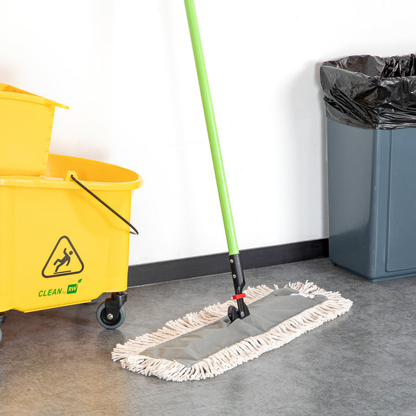 Ensure your floors are spotless with our Clean Tek Professional Cotton Dry Dust Mop Head. Pair this dry mop pad with a matching mop frame (SKU: RWT1818B, RWT1816G, and RWT1817K) for an efficient cleaning solution that delivers an excellent cleaning experience. Made from premium cotton yarn, this dust mop head efficiently whisks away and retains dust and dirt, allowing you to clean floors faster. This wide dust mop securely attaches to the mop frame and firmly stays in place while you work, providing reliable performance. Offering commercial-grade durability, this dry mop head is ideal for busy foodservice environments. This cotton dust mop head is disposable and allows you to clean your floors quickly and discard the dirty mop head afterward without worrying about storage or maintenance. Measuring 24 inches in length by 5 inches in width, this commercial dust mop head covers a large surface area for quicker cleaning. Sold in a 1 count box. Mop frame is available and sold separately.