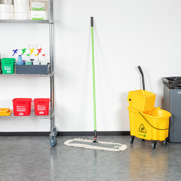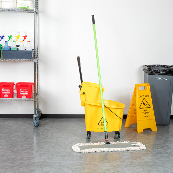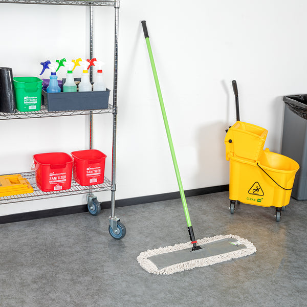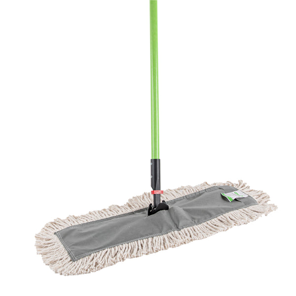 Enhance your cleaning routine with our Clean Tek Professional Cotton Dust / Dry Mop. This set includes a dusting mop head, handle, and frame, providing a comprehensive solution for hard-to-reach areas. Crafted from premium cotton, this dry mop efficiently captures dust and fine particles while ensuring durability for extended use. With an iron mop frame that resists bending or warping, this floor dust mop ensures long-lasting performance. The 64-inch handle on this floor duster offers increased range, making it easier to clean large areas and difficult spots without bending or stretching. Conveniently, this dust mop head is disposable, allowing for easy use and discard without the hassle of storage or washing. Measuring 24.02 inches in length by 5 inches in width by 64.96 inches in height, this commercial dust mop is perfect for maintaining a pristine environment in any commercial setting. Sold in a 1 count box.