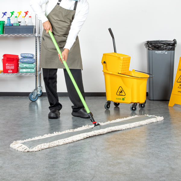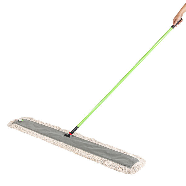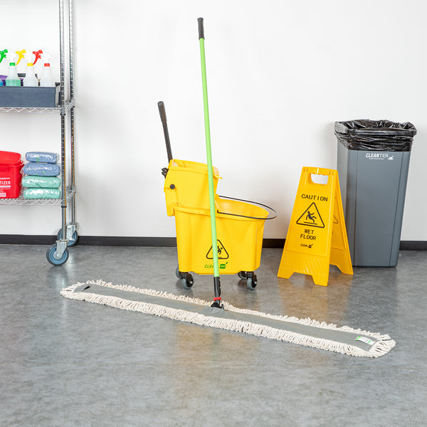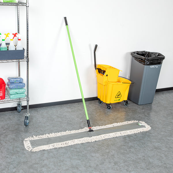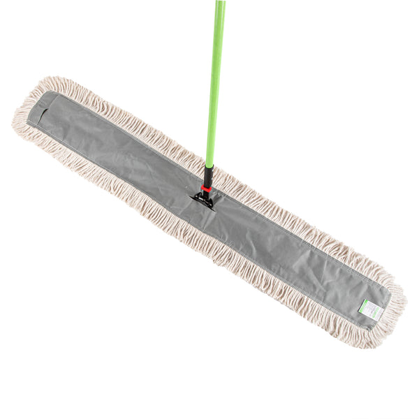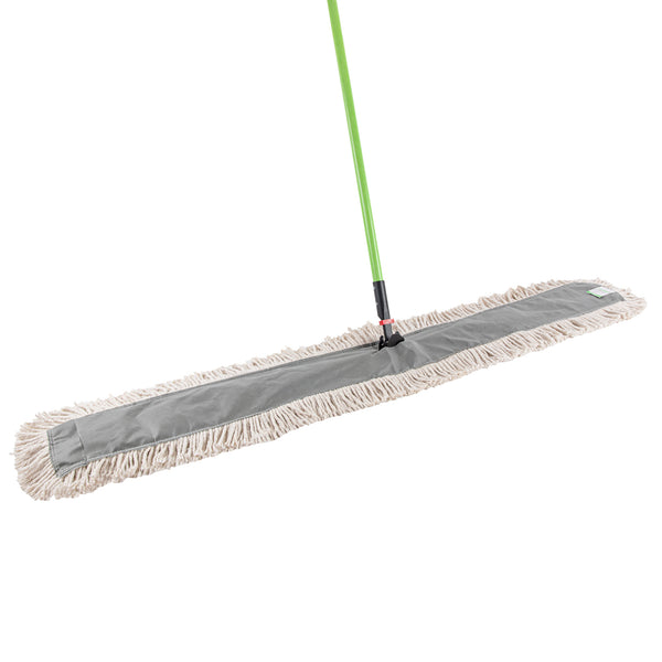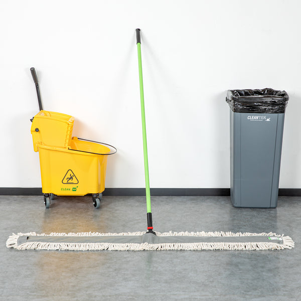 Enhance your cleaning routine with our Clean Tek Professional Cotton Dust / Dry Mop. This set includes a dusting mop head, handle, and frame to offer a complete and convenient cleaning solution for tackling dust and debris on various surfaces. Crafted from premium cotton, this dust mop efficiently captures dust and fine particles, ensuring an immaculate finish on multiple surfaces. Equipped with an iron mop frame, this floor duster does not bend or warp, ensuring long-lasting performance even with frequent use. The 64-inch handle of this floor dust mop provides an extended range, making it effortless to clean large areas and hard-to-reach spots without bending or stretching. Designed for convenience, this dry mop head is disposable, allowing you to discard it after use without worrying about storage or washing. Measuring 59.84 inches in length by 5 inches in width by 64.96 inches in height, this commercial dust mop is perfectly sized for efficient handling and thorough cleaning. Sold in a 1 count box.