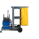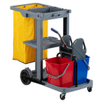 GRAY 3-SHELF JANITOR CART - 18 GAL BAG, 2 BUCKETS, WRINGER