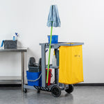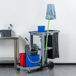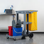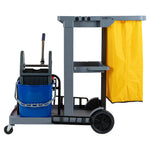 Clean Tek Professional Gray 3-Shelf Janitor Cart - 18 gal Bag, 2 Buckets, Wringer - 44