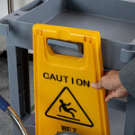 • 3-tiered shelves provide room for organizing and storing cleaning supplies and equipment