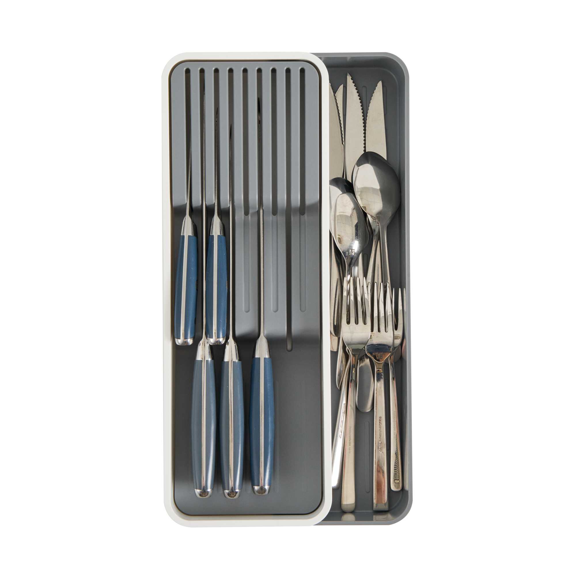 PROFESSIONAL GRAY AND WHITE PLASTIC 2-TIER KNIFE DRAWER ORGANIZER