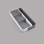 Maximize your kitchen's efficiency with space-saving solutions. The Clean Tek Professional Gray and White Plastic Expandable 2-Tier Knife Drawer Organizer provides a versatile and organized way to safely store your knives while saving valuable countertop space. Its expandable design adjusts to accommodate various knife sizes, making it an ideal expandable knife organizer for chefs and home cooks alike. Featuring a compact layout, this kitchen knife organizer maximizes drawer space, allowing you to keep utensils within easy reach. With designated slots for up to 5 small knives and 4 large knives, this knife drawer insert is perfect for maintaining order in your culinary workspace. The sleek gray color seamlessly coordinates with modern kitchen aesthetics, ensuring your kitchenware remains stylish and functional. Each order includes 12 organizers.