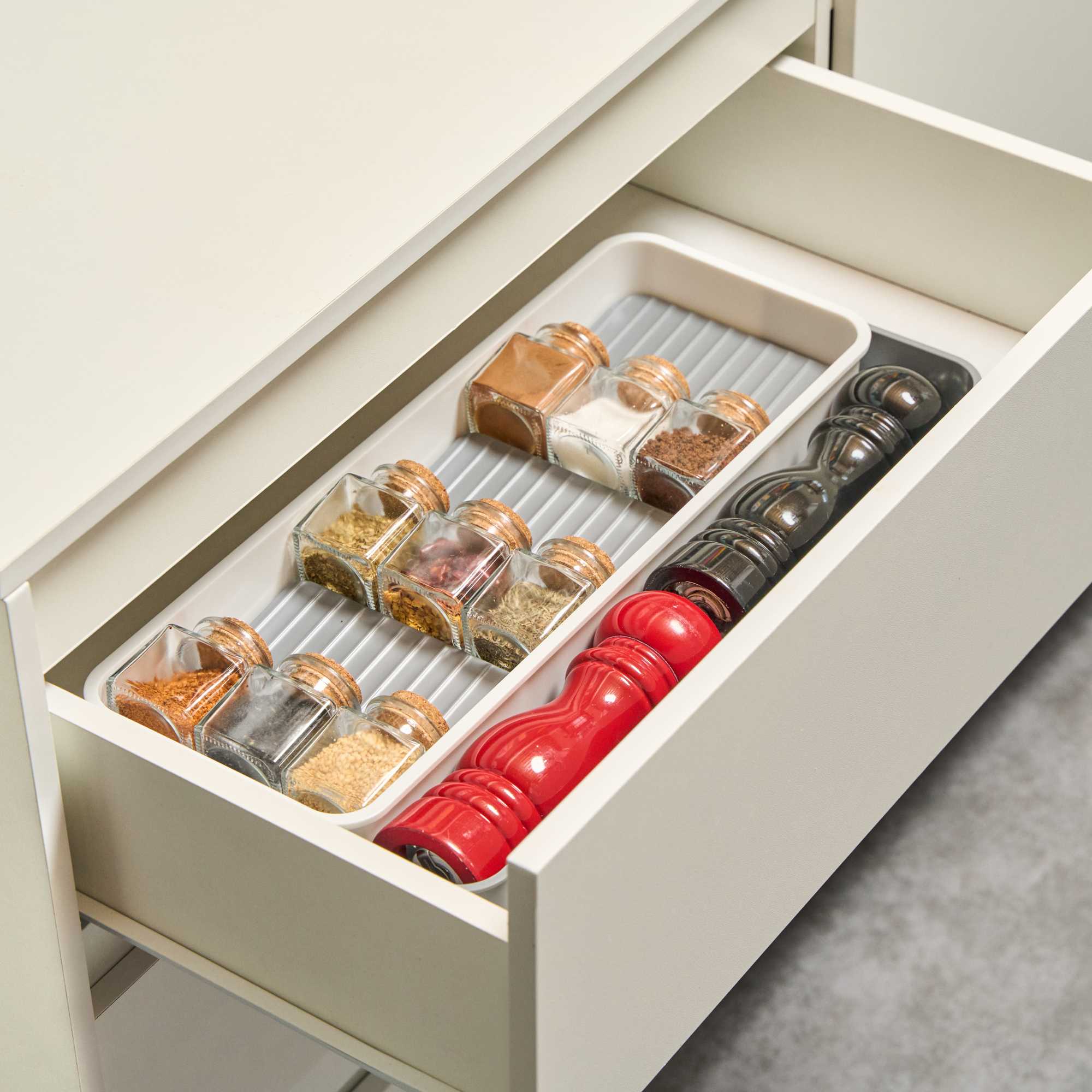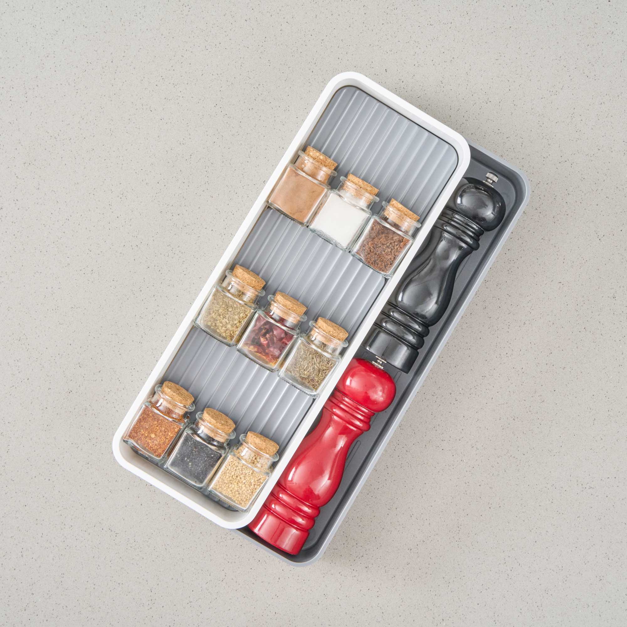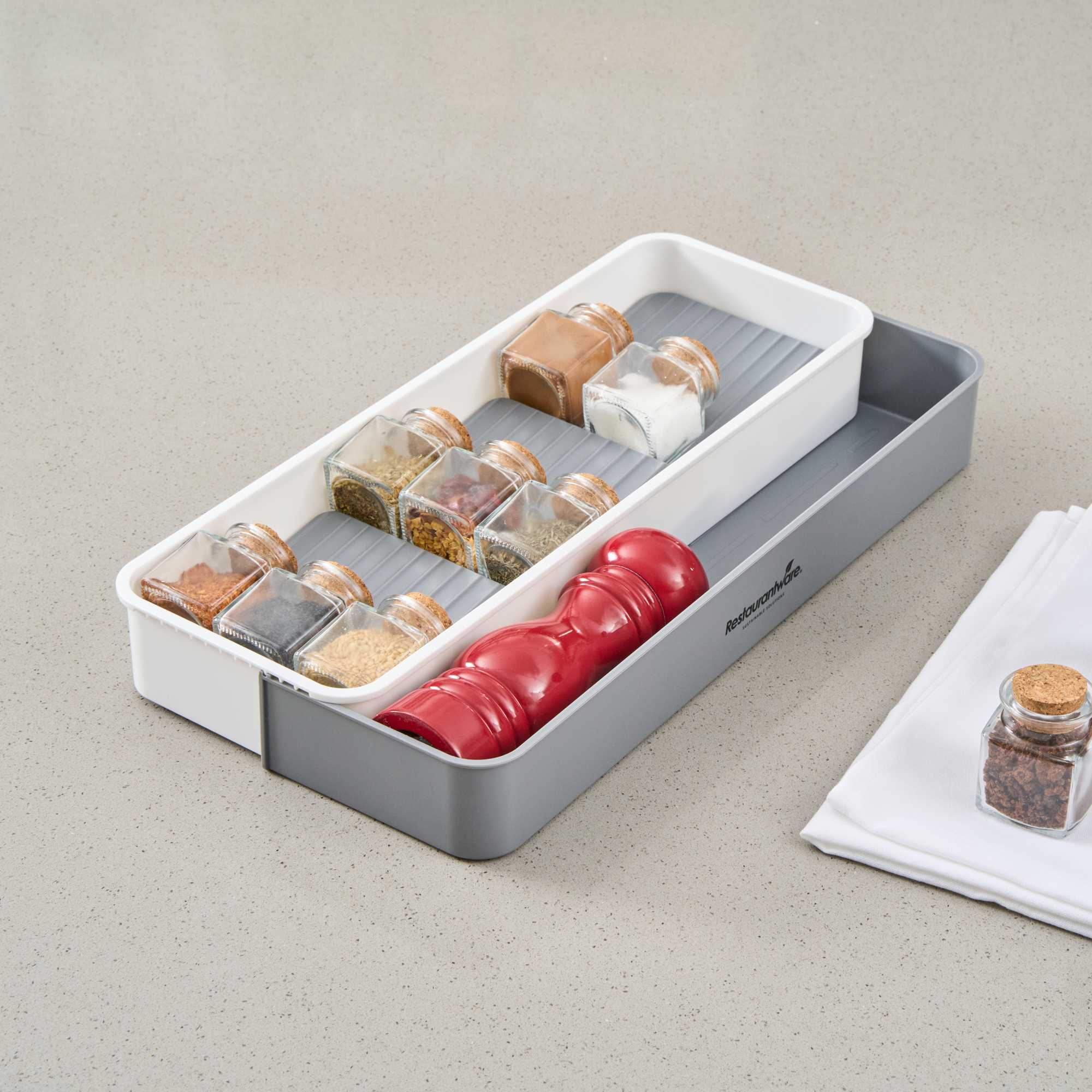 PROFESSIONAL GRAY AND WHITE PLASTIC 3-TIER SPICE DRAWER ORGANIZER