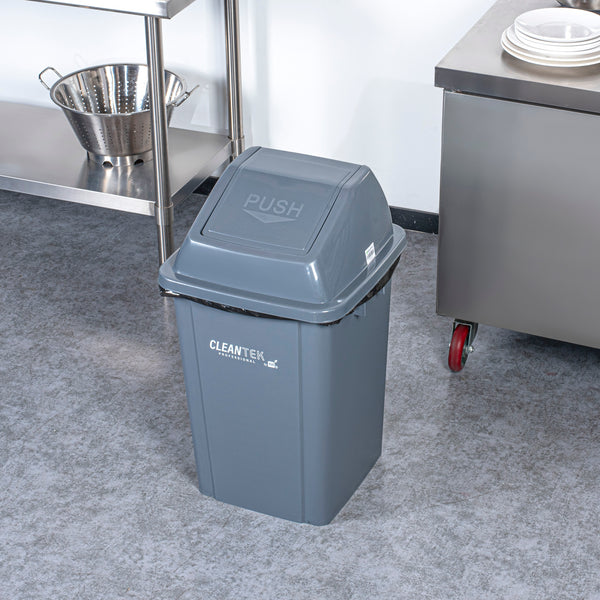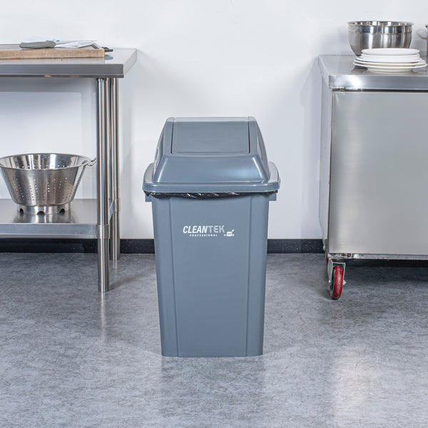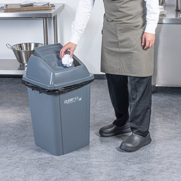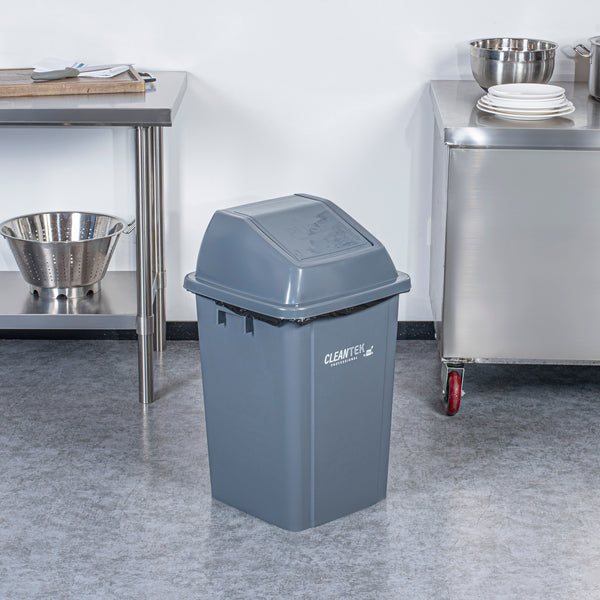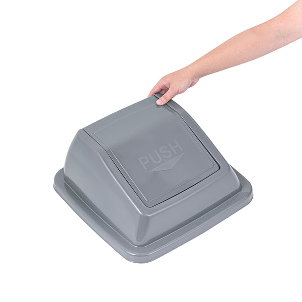 Efficiently manage waste with our Clean Tek Professional Gray Dome Top Lid. The flaps of this trash can lid swing downwards for easy access, allowing for quick disposal of waste while keeping the contents hidden. Pair this garbage can lid with its compatible dust bins (SKUs: RWT2017GR and RWT2016GR) for an efficient waste management solution. Made from premium plastic, this durable lid withstands heavy-duty use at your foodservice establishment. The sleek, contemporary design makes this storage bin lid ideal for front-of-house applications and even outdoor use. Blending in with most decor, the classic gray color of this plastic lid ensures it complements any setting. Measuring 16.14 inches in length by 16.34 inches in width by 7.09 inches in height, this bin lid offers ample coverage for your waste disposal needs. Sold in a 1 count box. Trash cans are available and sold separately.