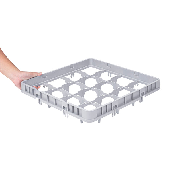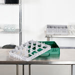 Optimize your glassware organization with our Clean Tek Professional Gray Full Drop Extender. This versatile dishwasher rack extender seamlessly pairs with our collection of compatible Clean Tek Professional glass racks. By increasing the height of your glass rack, this compartment rack provides extra protection for taller glassware and prevents damage during storage and transport. Designed to hold up to 16 glasses, this full drop glass rack extender offers ample space for various barware sizes. Featuring open interior compartments, this commercial glass rack ensures enhanced cleaning, allowing every glass to sparkle. The solid external walls of this barware organizer offer robust protection during transport and storage. With an easy-to-handle design, this glass rack extender makes loading and unloading quick and safe. Measuring 19.69 inches in length by 19.69 inches in width by 4.72 inches in height, this glassware storage solution fits seamlessly into your existing setup. Sold in a 1 count box. Glass rack is available and sold separately.