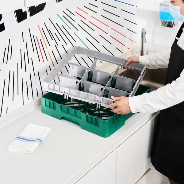 Optimize your dishwashing efficiency with our Clean Tek Professional Easy-Clean Glass Rack Extender. Designed for the rigorous demands of commercial kitchens, this glass rack extender features open interior compartments that facilitate stress-free cleaning of your glassware, ensuring spotless results every time. Constructed from sturdy gray plastic, it boasts solid external walls that protect your delicate glassware, even in the busiest kitchen environments, making it an indispensable tool for glassware protection. The easy-to-handle design of this commercial dishwasher rack extender ensures swift service during peak dining hours, allowing your staff to maintain a seamless workflow. With dimensions of 19.69 inches by 19.69 inches and a height of 4.72 inches, it fits perfectly into your existing dishwashing system. Enhance your dishwashing process with this reliable glass rack extension. Each order includes 1 Clean Tek Professional Easy-Clean Glass Rack Extender.
