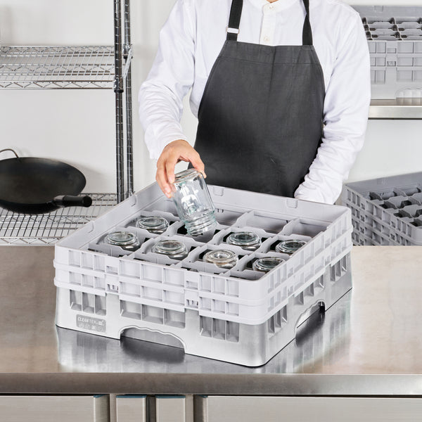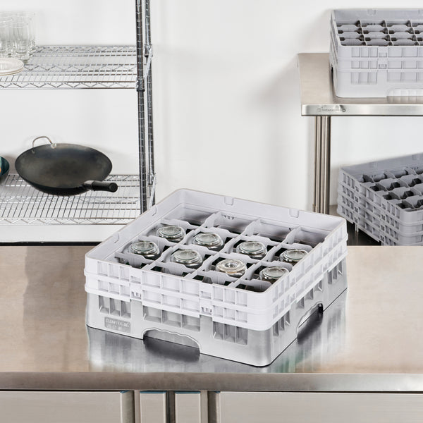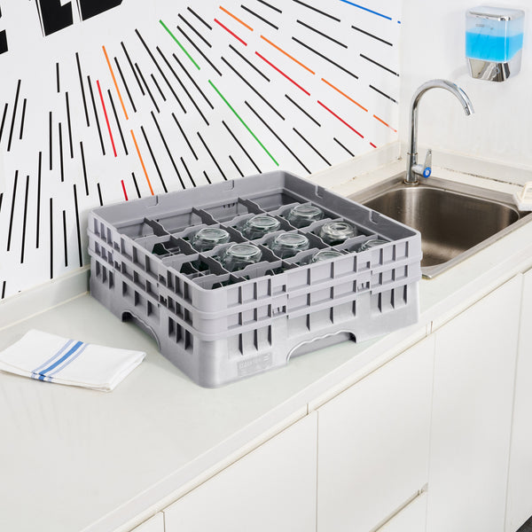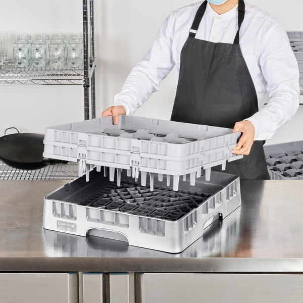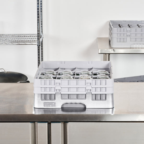 Our Clean Tek Professional Gray Glass Rack offers the perfect solution for efficient glassware storage in any bustling kitchen or bar. Featuring 16 compartments, this dishwasher rack ensures each piece of glassware is securely held and protected during washes. With a full drop extender and a half drop extender, this compartment rack provides flexibility and additional height to accommodate taller glassware. Designed for durability, this commercial glass rack is crafted from sturdy PP material, making it perfect for repeated use in busy foodservice settings. The easy-to-handle design of this barware organizer simplifies the process of transporting and loading glassware into dishwashers. Built with open interior compartments, this rack allows for thorough washing and quick drying of each item. Solid external walls enhance the structural integrity, ensuring this rack stands up to the demands of commercial use. Measuring 19.69 inches in length by 19.69 inches in width by 7.24 inches in height, this dishwasher rack is a compact and efficient choice for maximizing space. Sold in a 1 count box.