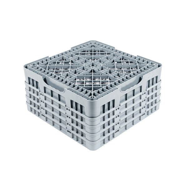 Efficiently organize your kitchen with our Clean Tek Professional Gray Glass Rack, perfect for all your glassware storage needs. This commercial glass rack boast 25 compartments, ensuring each piece of glassware is neatly separated and protected. With a dishwasher rack design, the 1 full drop extender and 3 half drop extenders add flexibility to accommodate various glass heights. Crafted from durable PP, this compartment rack ensure long-lasting performance in busy settings. The easy-to-handle design makes this barware organizer a breeze to maneuver during hectic service hours. Featuring open interior compartments, this rack allow for optimal water flow and thorough cleaning. Solid external walls provide added strength and stability, ensuring your glassware remains secure. Measuring 19.69 inches in length by 19.69 inches in width by 10.51 inches in height, this rack is designed to fit seamlessly into commercial dishwashing setups. Sold in a 1 count box.