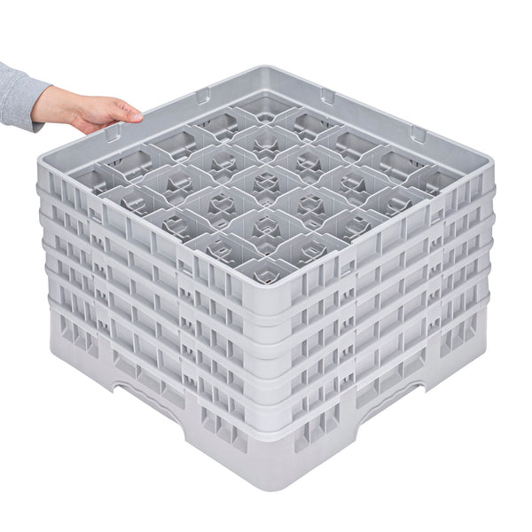 GRAY GLASS RACK - 25 COMPARTMENTS, 1 FULL AND 4 HALF DROP EXTENDERS