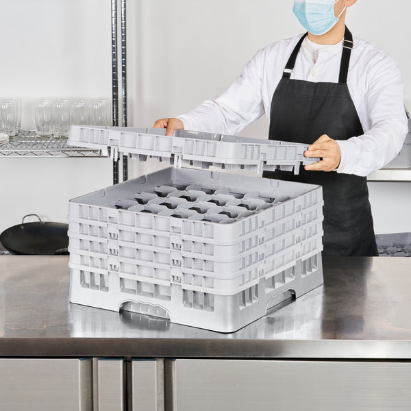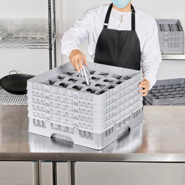 Clean Tek Professional Gray Glass Rack - 25 Compartments, 1 Full Drop and 4 Half Drop Extenders - 19 3/4