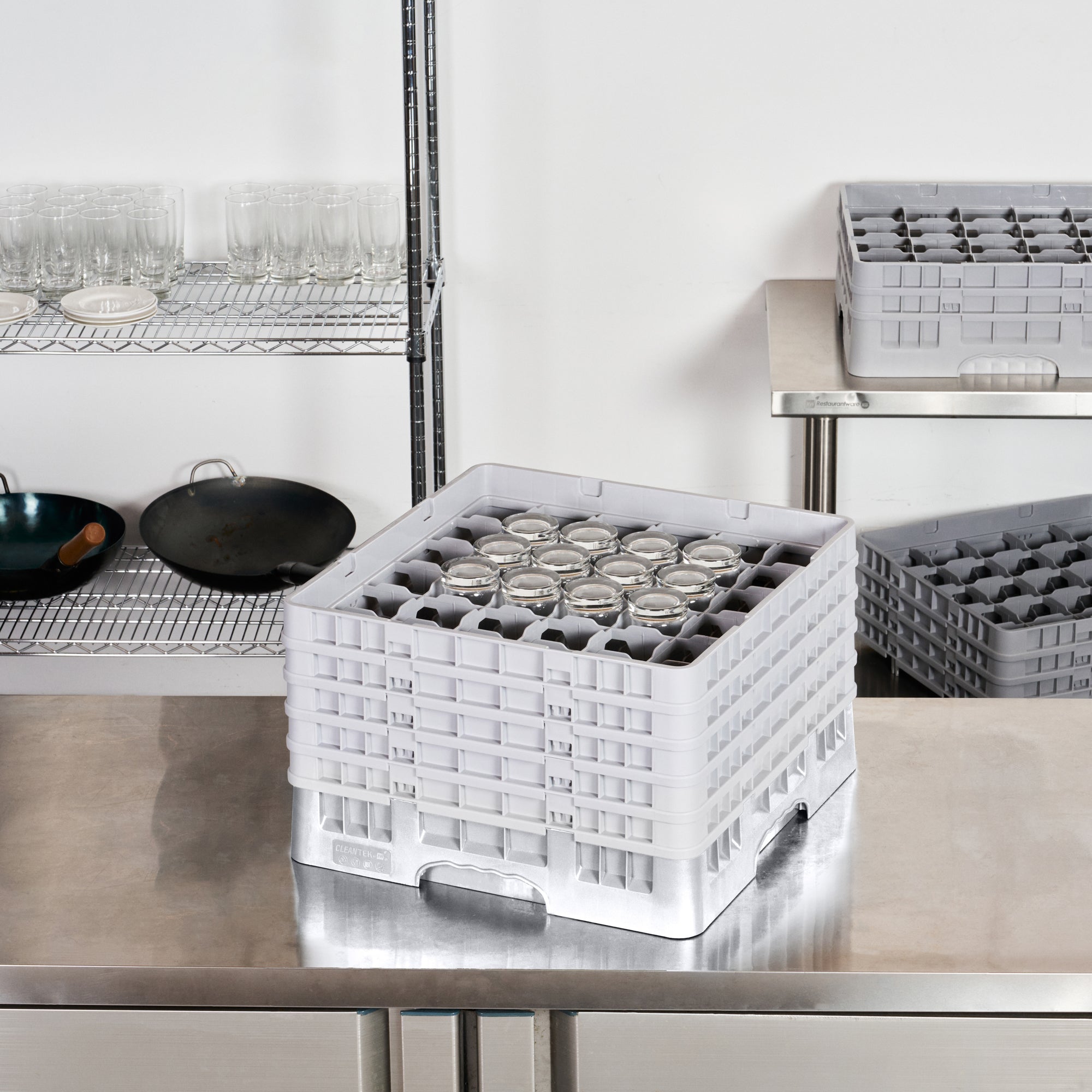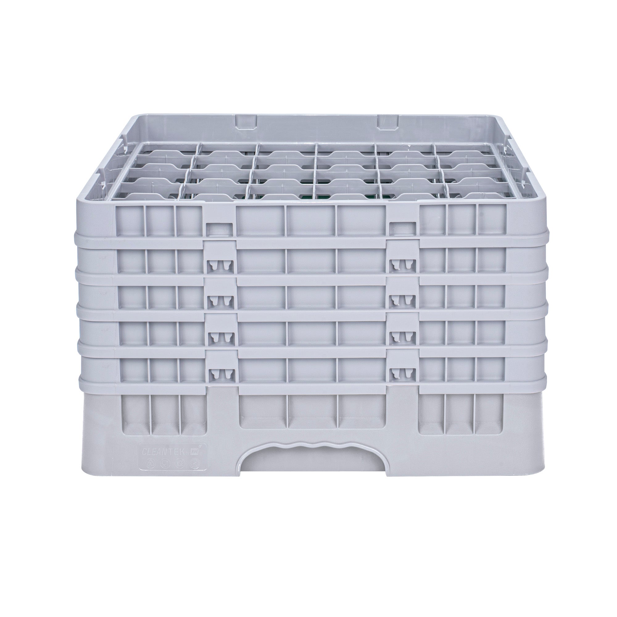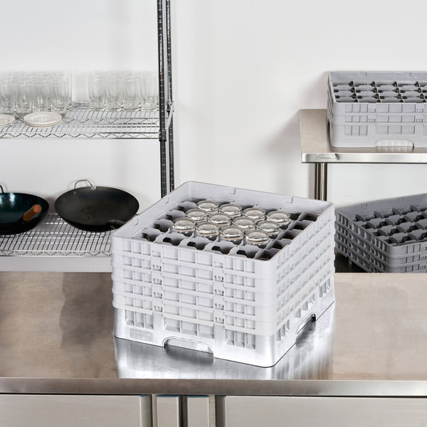 Elevate your glassware storage with our Clean Tek Professional Gray Glass Rack. Designed with 36 compartments, this dishwasher rack ensures your glassware remains secure and organized. Featuring a full drop extender, this compartment rack accommodates various glass sizes for versatile use. Equipped with 4 half drop extenders, this barware organizer offers additional flexibility and support. Constructed from durable PP, this commercial glass rack withstands the rigors of busy kitchens and bars. The easy-to-handle design of this glassware storage solution ensures effortless transport and handling. With open interior compartments, this rack allows for effective air circulation and quick drying. Solid external walls provide added protection and stability for your glassware. Measuring 19.69 inches in length by 19.69 inches in width by 12.13 inches in height, this dishwasher rack perfectly fits into commercial dishwashing units. Sold in a 1 count box.