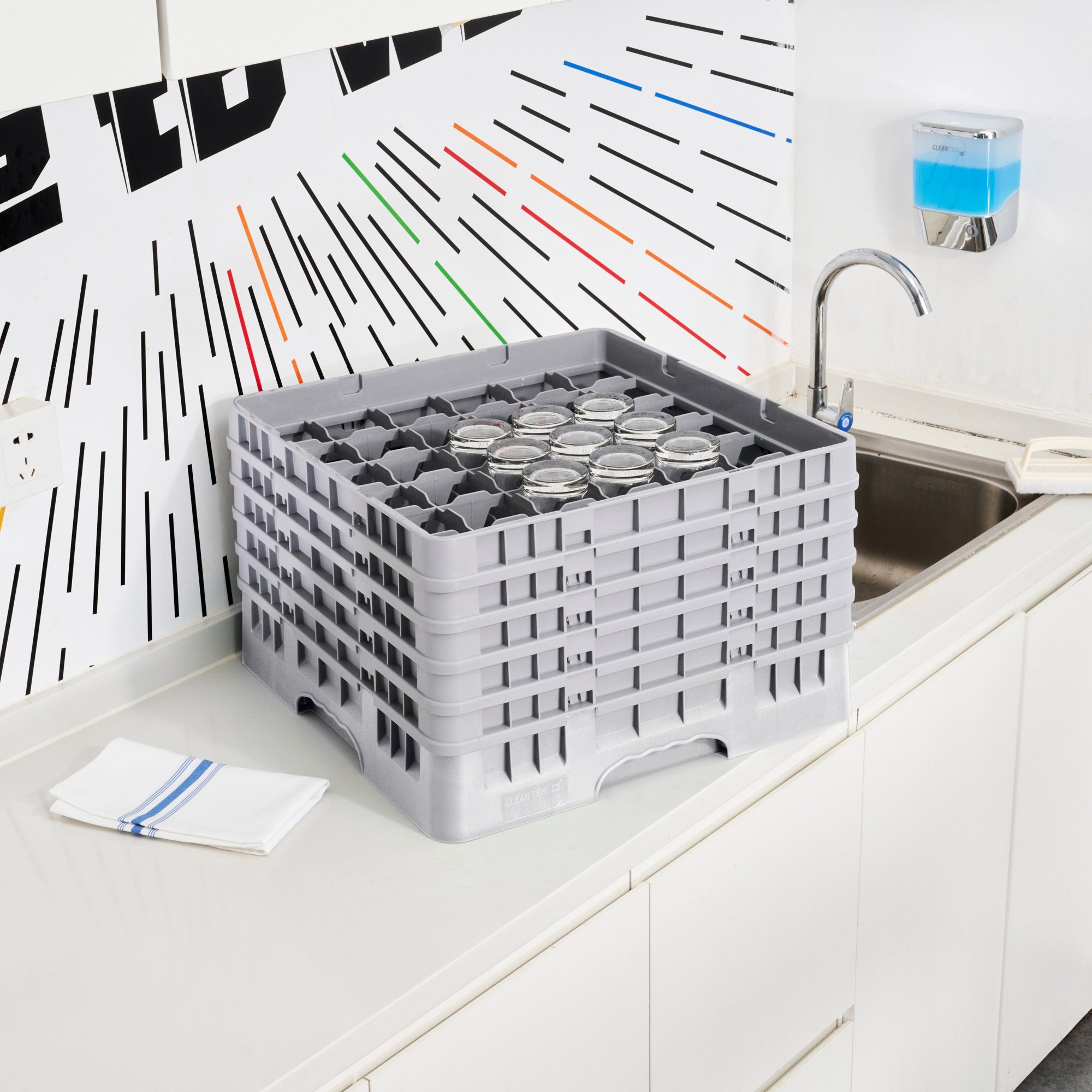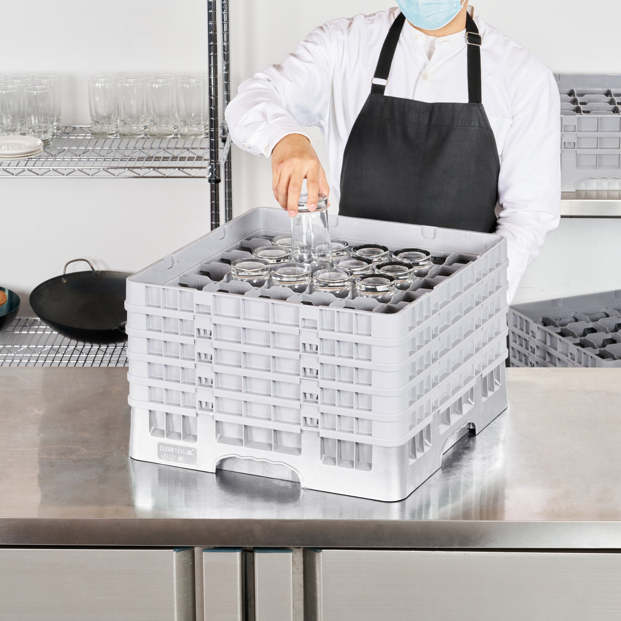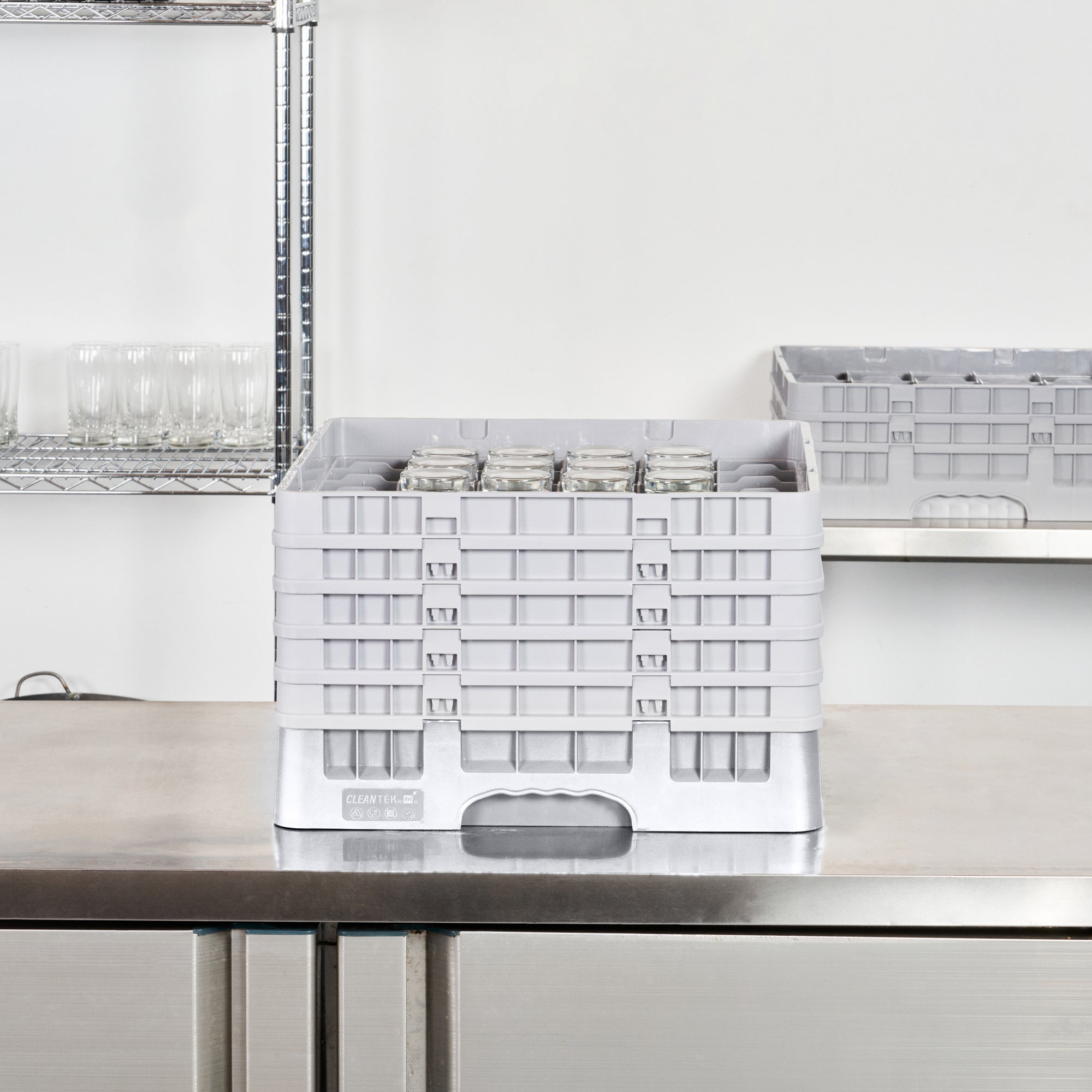 Elevate your glassware storage with our Clean Tek Professional Gray Glass Rack. Designed with 36 compartments, this dishwasher rack ensures your glassware remains secure and organized. Featuring a full drop extender, this compartment rack accommodates various glass sizes for versatile use. Equipped with 4 half drop extenders, this barware organizer offers additional flexibility and support. Constructed from durable PP, this commercial glass rack withstands the rigors of busy kitchens and bars. The easy-to-handle design of this glassware storage solution ensures effortless transport and handling. With open interior compartments, this rack allows for effective air circulation and quick drying. Solid external walls provide added protection and stability for your glassware. Measuring 19.69 inches in length by 19.69 inches in width by 12.13 inches in height, this dishwasher rack perfectly fits into commercial dishwashing units. Sold in a 1 count box.