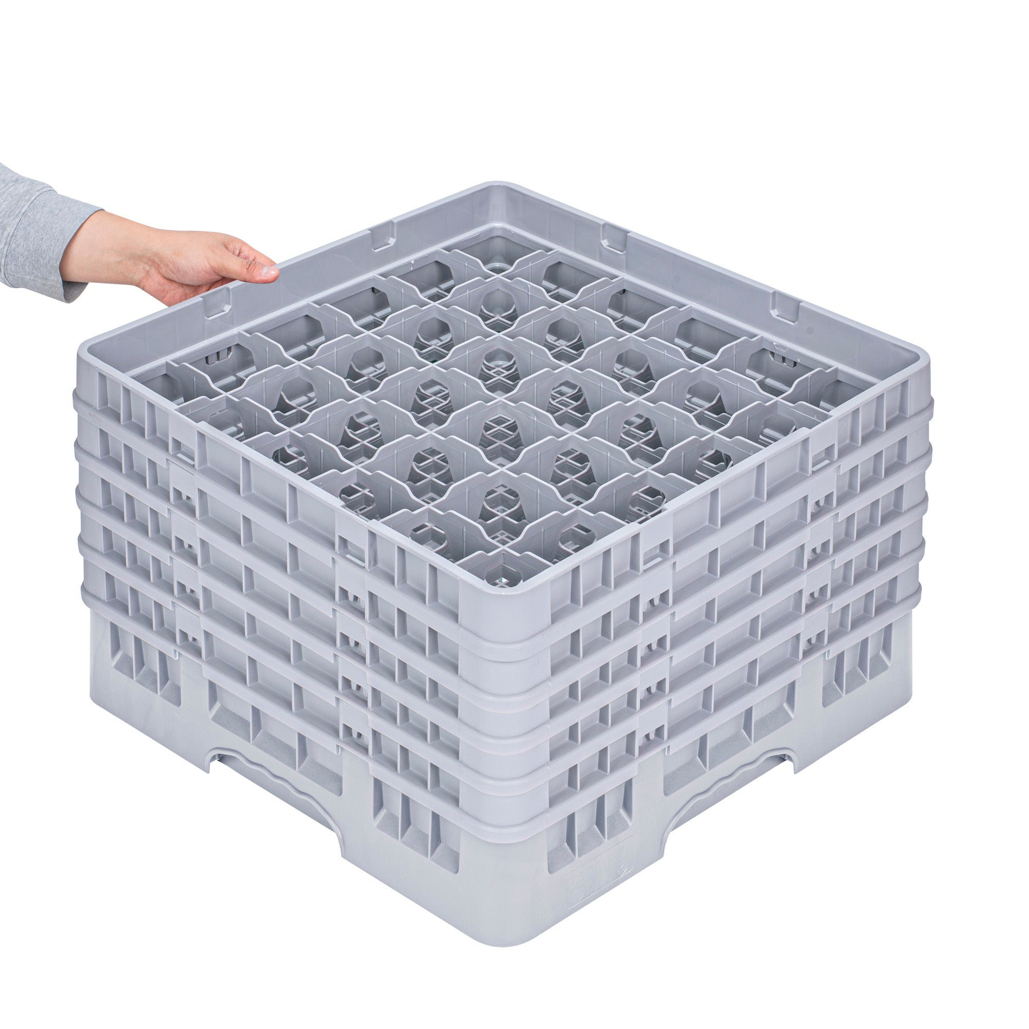 GRAY GLASS RACK - 36 COMPARTMENTS, 1 FULL AND 4 HALF DROP EXTENDERS