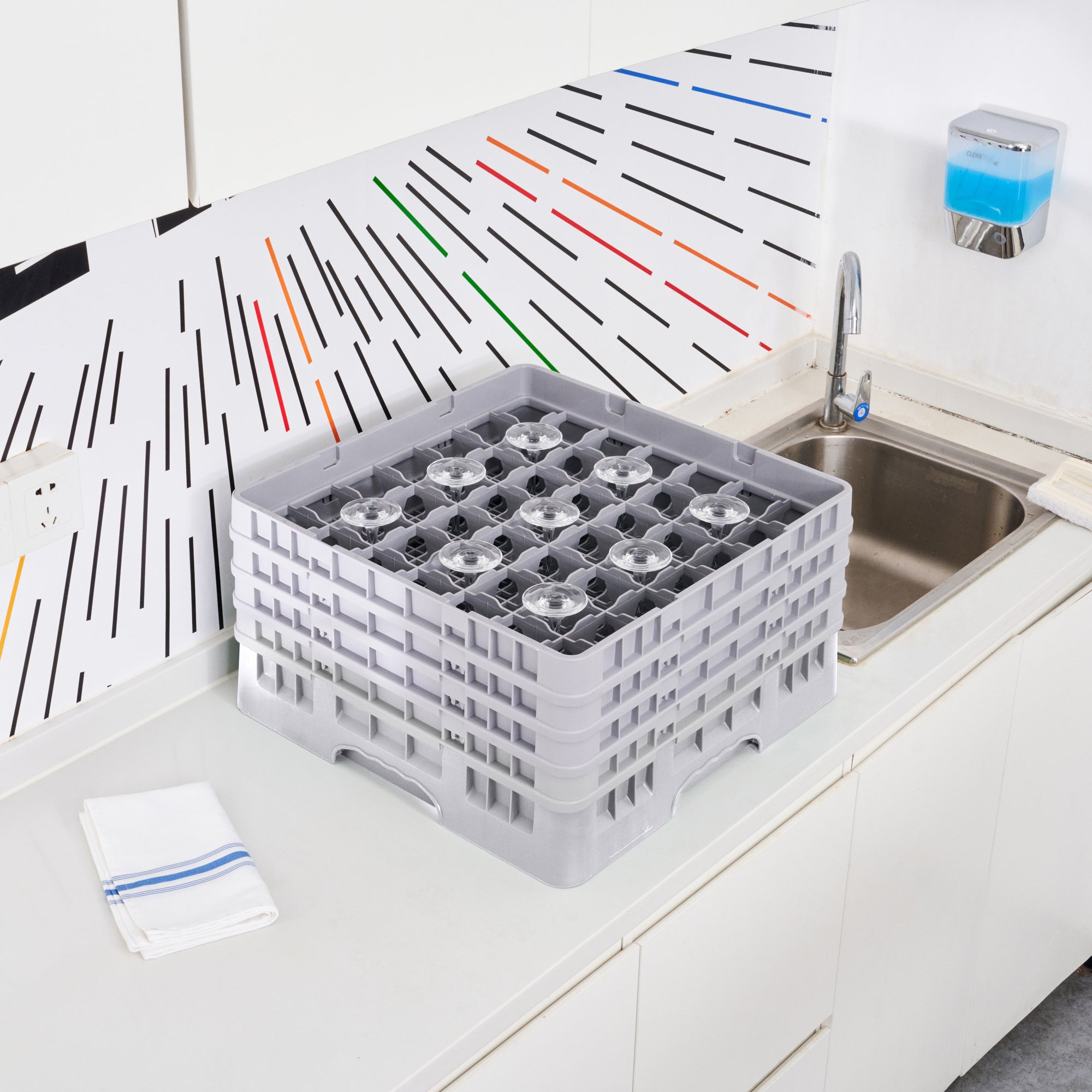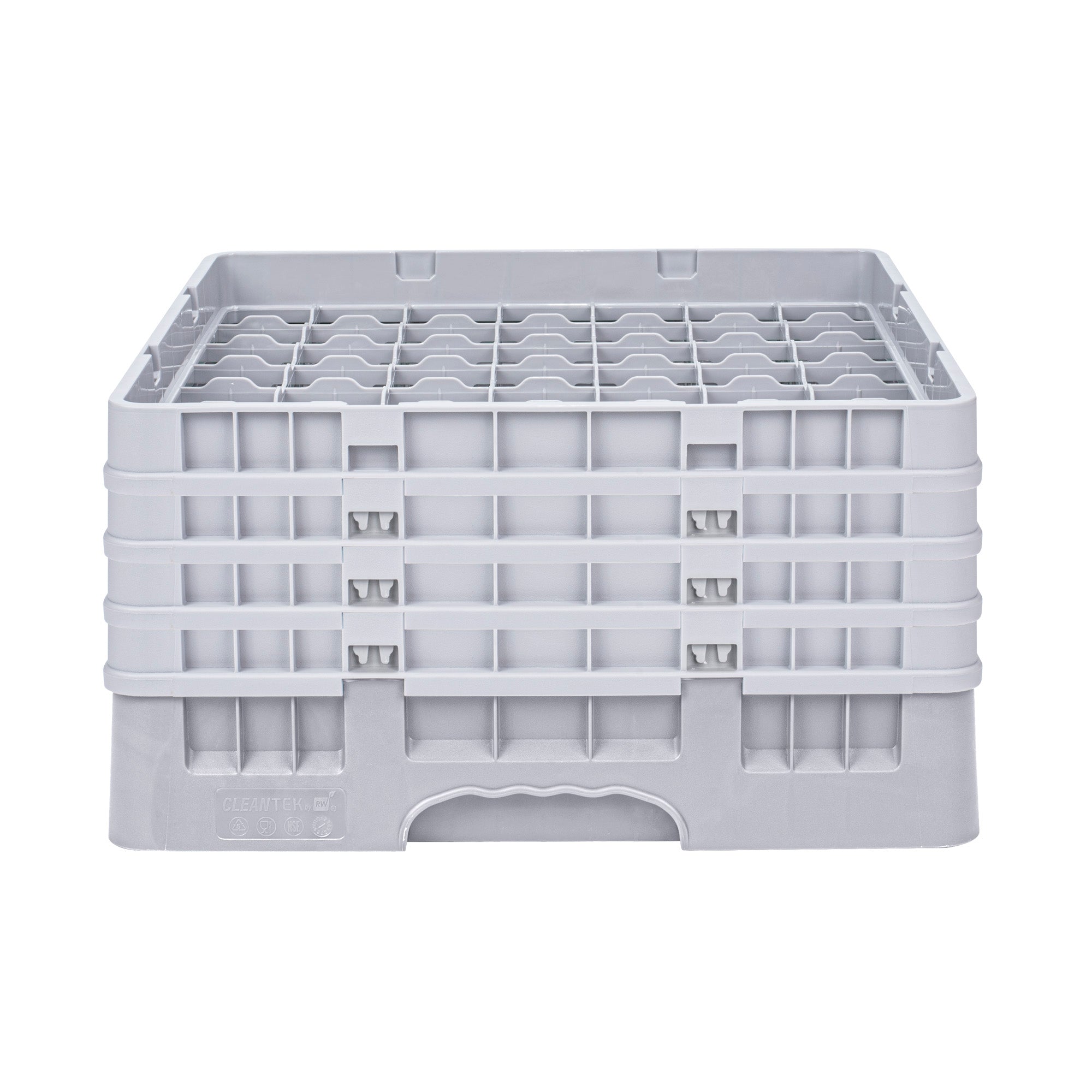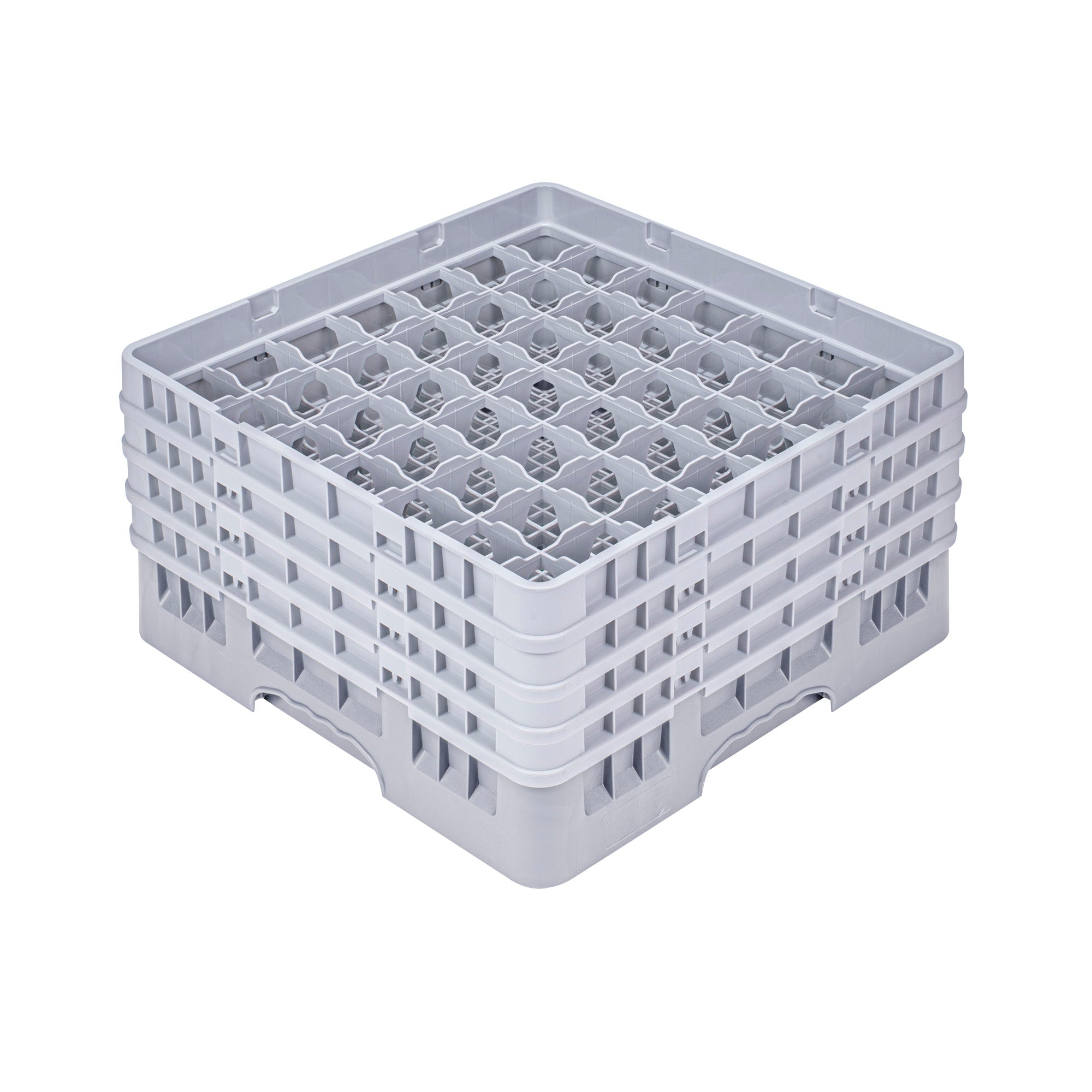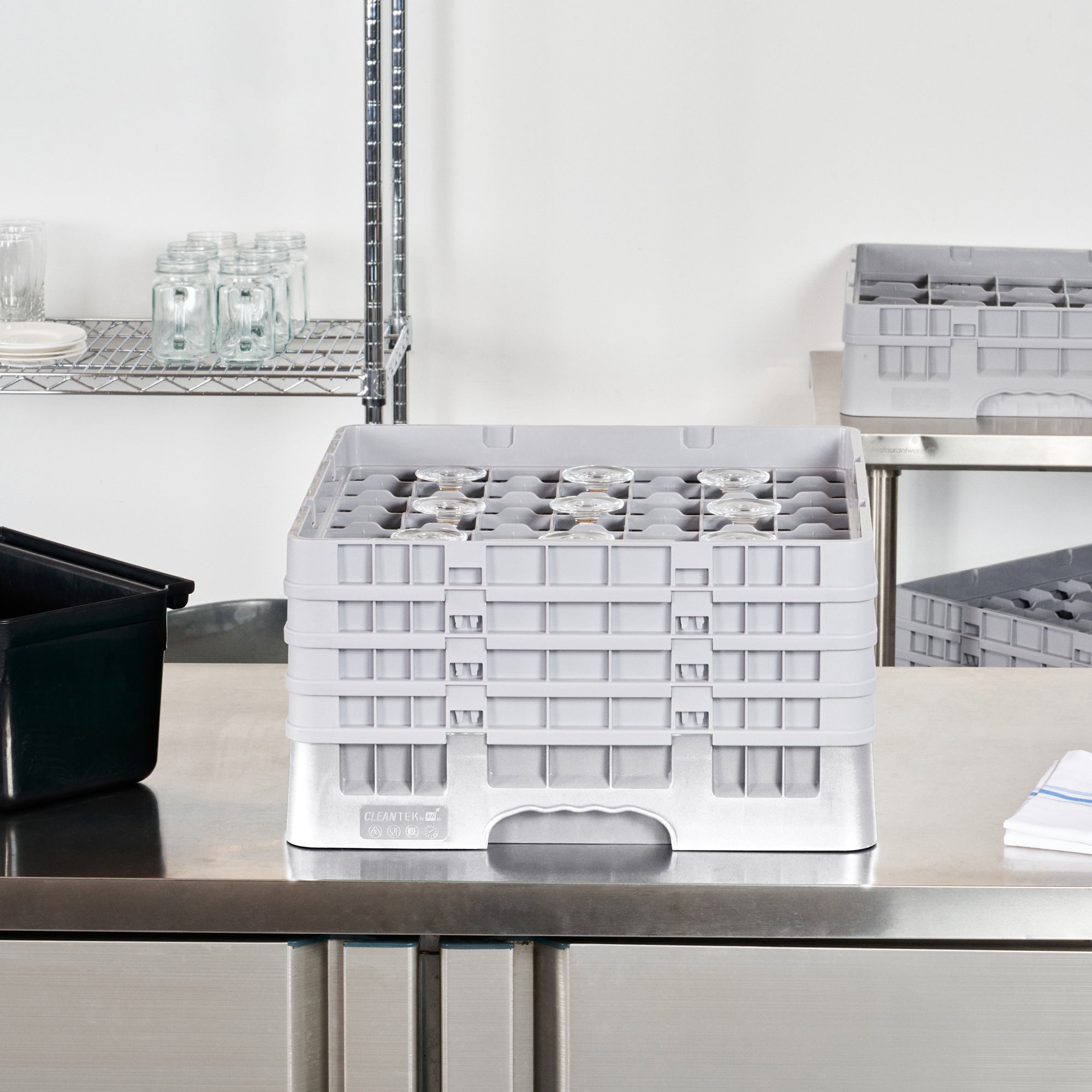 Effortlessly organize and protect your glassware with our Clean Tek Professional Gray Glass Rack. This commercial glass rack features 49 compartments, ensuring each piece of glassware has its own secure spot. Designed with an easy-to-handle structure, this dishwasher rack simplifies the transport of your glassware from the bar to the kitchen. Featuring a full drop extender and three half drop extenders, this compartment rack offers versatile storage solutions for various glass sizes. Constructed from durable PP, this barware organizer ensures long-lasting use and reliability. The open interior compartments make loading and unloading glassware a breeze, while the solid external walls provide added protection during handling. Measuring 19.69 inches in length by 19.69 inches in width by 10.51 inches in height, this glass rack is perfectly sized for commercial use. Sold in a 1 count box.
