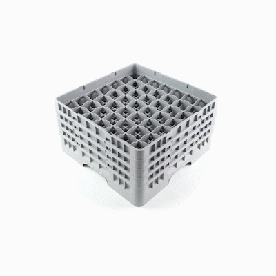 GRAY GLASS RACK - 49 COMPARTMENTS, 1 FULL AND 3 HALF DROP EXTENDERS
