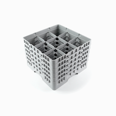 GRAY GLASS RACK - 9 COMPARTMENTS, 1 FULL AND 4 HALF DROP EXTENDERS