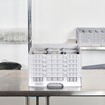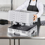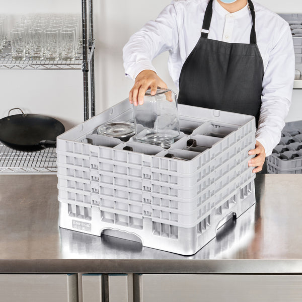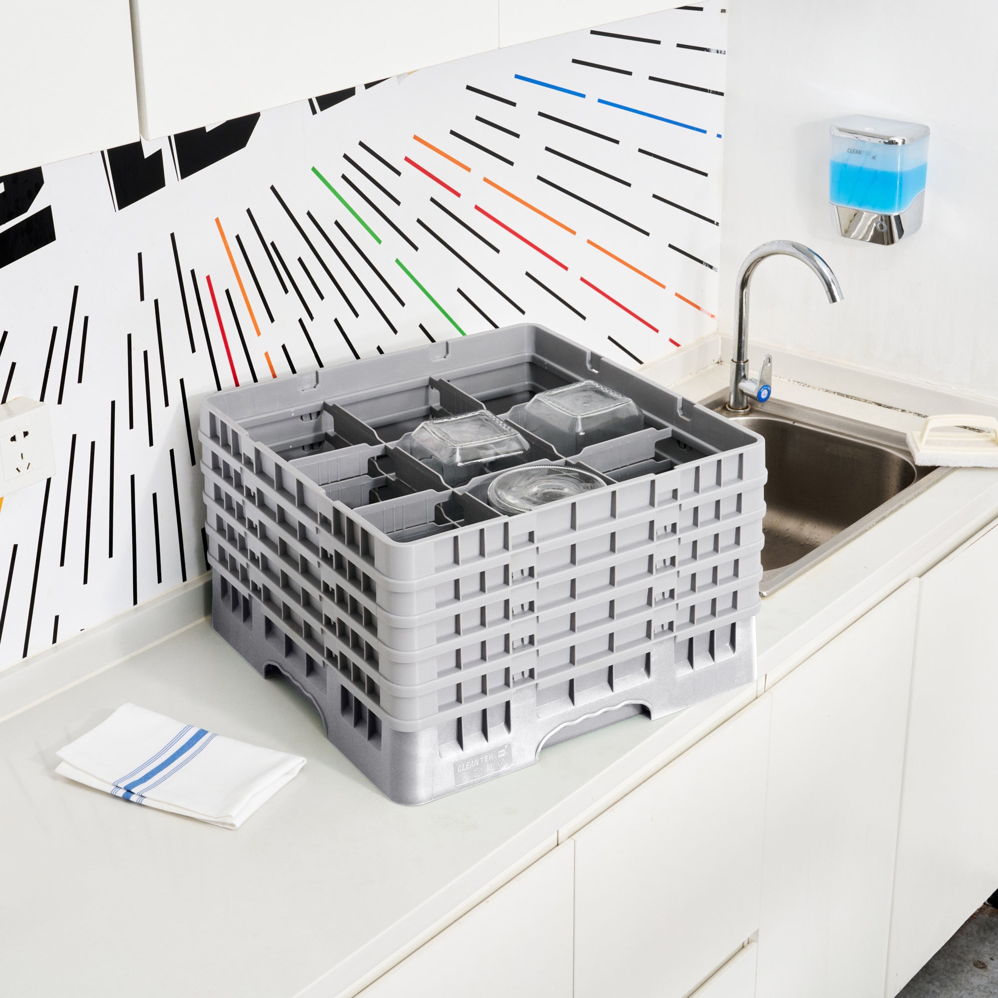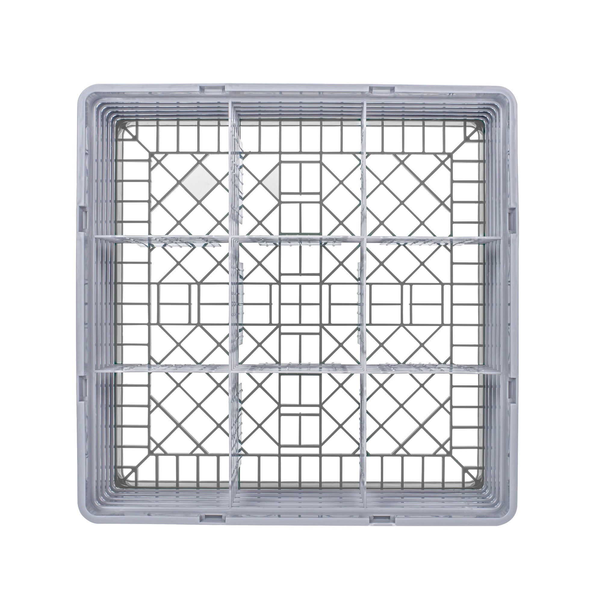 Maximize your glassware storage with our Clean Tek Professional Gray Glass Rack. This durable rack offers 9 compartments, perfect for organizing and securing various glass types during transit. Featuring a dishwasher rack design, this rack ensures efficient and thorough cleaning of your barware. The compartment rack structure includes a full drop extender and 4 half drop extenders, providing customizable storage solutions for commercial kitchens. With an easy-to-handle design, this glass rack simplifies the process of loading and unloading glassware. The open interior compartments and solid external walls make this barware organizer both practical and reliable. Constructed from durable PP, this commercial glass rack is built to withstand heavy use. Measuring 19.69 inches in length, 19.69 inches in width, and 12.13 inches in height, this glass rack is ideal for any busy foodservice establishment. Sold in a 1 count box.