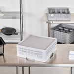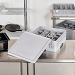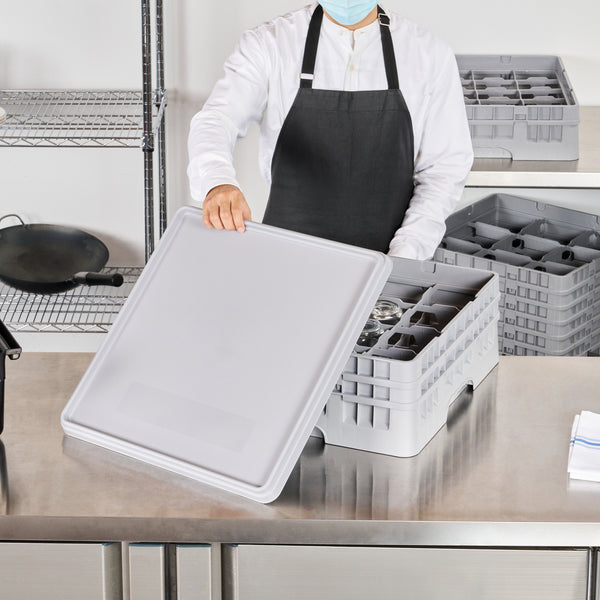 Enhance the protection of your glassware with our Clean Tek Professional Gray Glass Rack Cover. Pair this durable plastic cover with our collection of compatible Clean Tek professional dish racks to keep your glasses safe from damage. Designed to shield your glassware from dust and dirt, this gray lid ensures your items remain sanitary and in pristine condition. Maximizing versatility, this rack cover is perfect for storing glassware or transporting it to different locations. Crafted from premium plastic, this plastic lid withstands daily use, providing long-lasting performance for your operations. Measuring 19.69 inches in length by 19.69 inches in width by 1.38 inches in height, this glass rack cover fits seamlessly into your existing setup. Sold in a 1 count box. Glass racks are available and sold separately.
