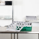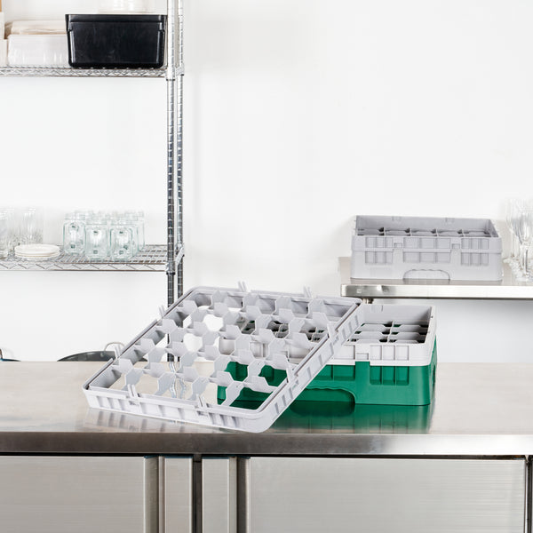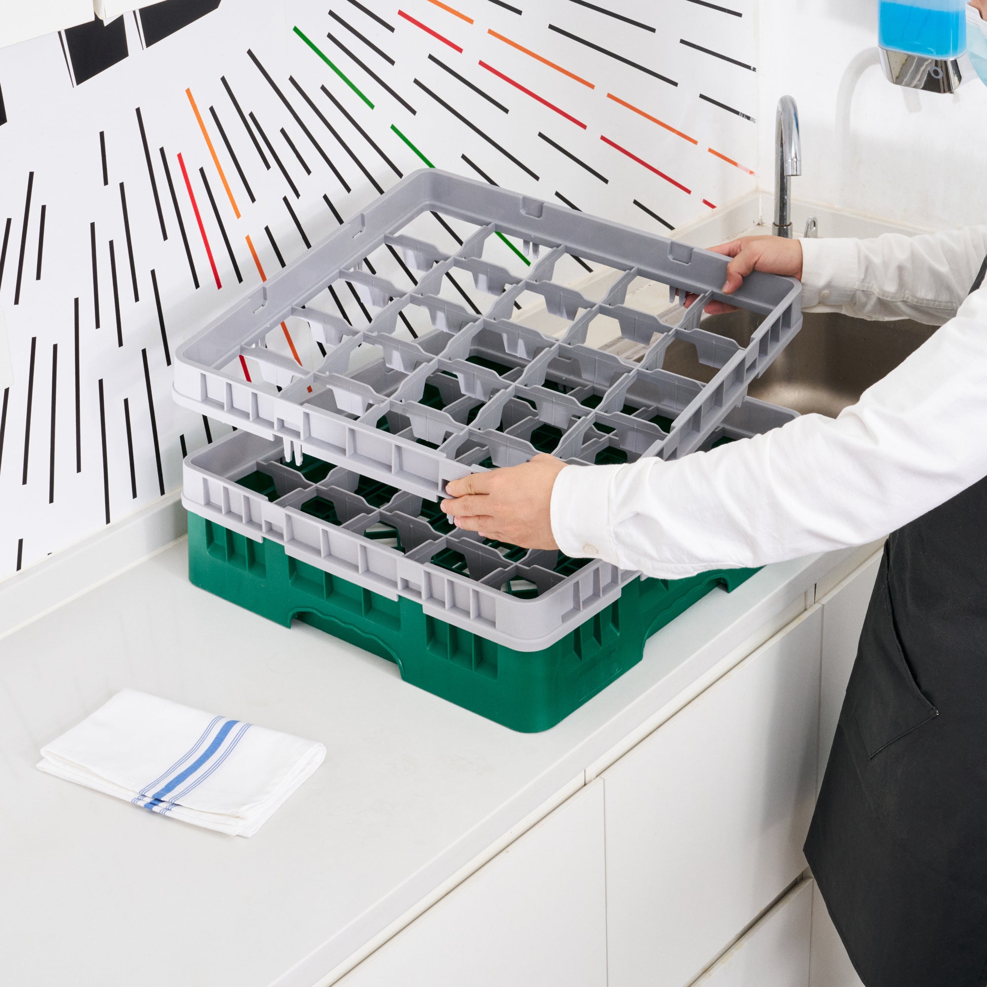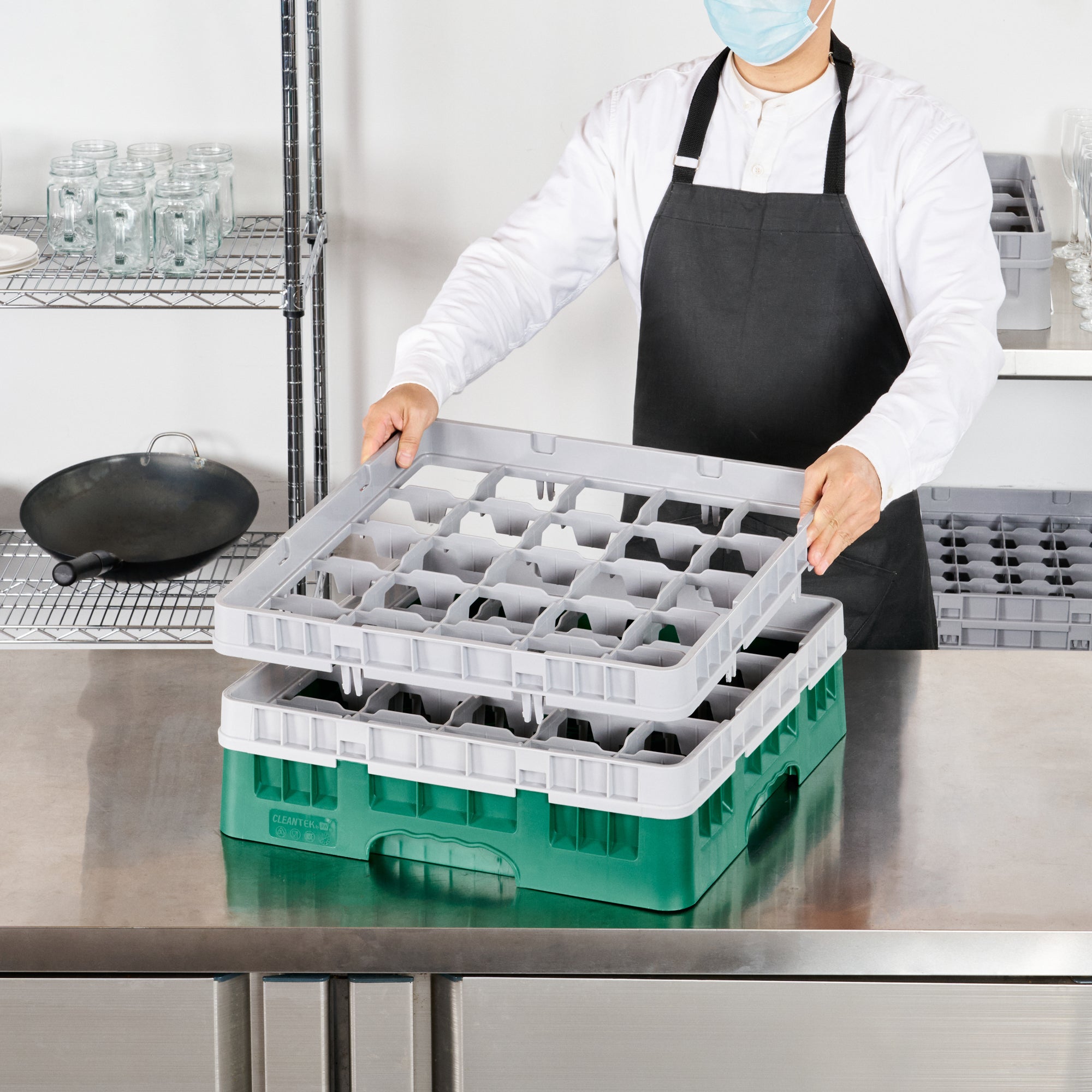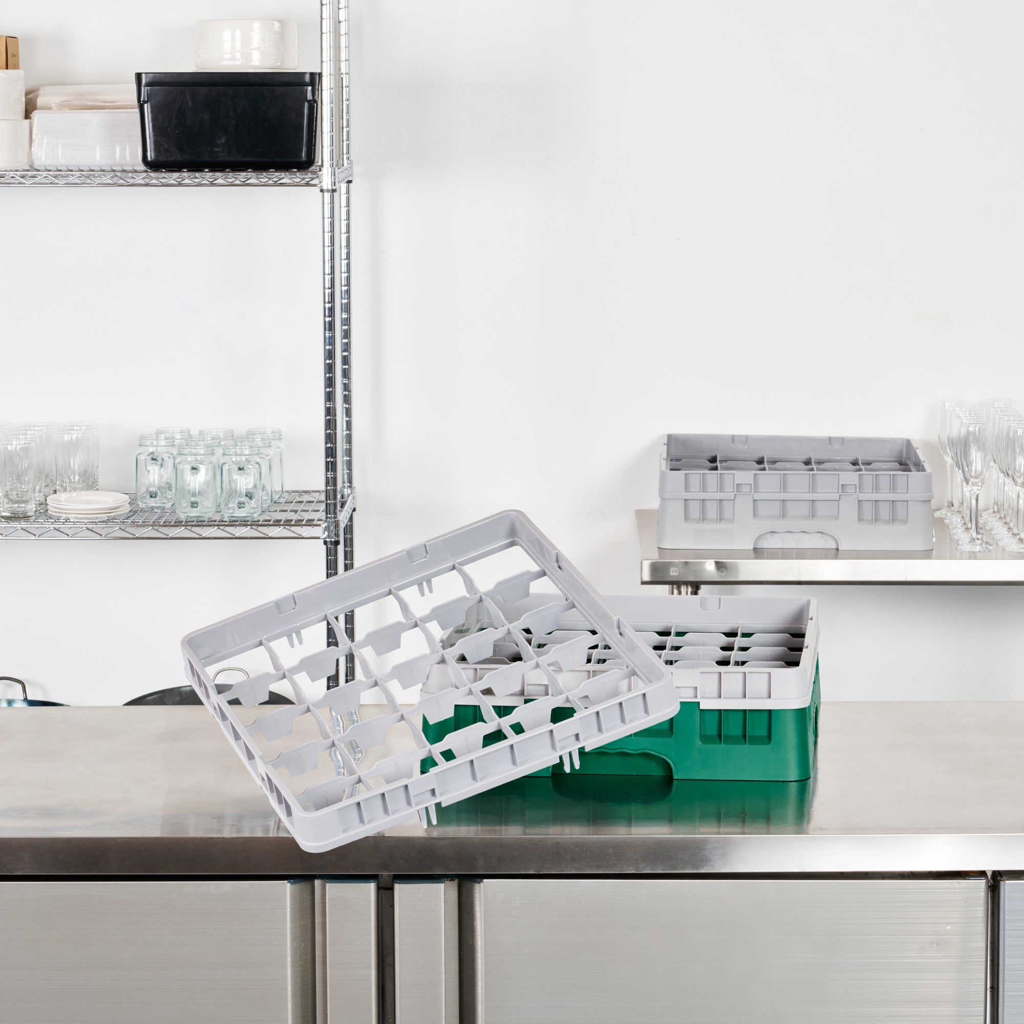 Enhance your glassware cleaning with our Clean Tek Professional Gray Half Drop Extender. Pair this glassware storage with our collection of compatible Clean Tek Professional glass racks to effortlessly increase the height of your glass rack. This half drop extender provides extra protection for taller glassware and prevents damage during storage and transport. Designed to hold up to 25 glasses, this dishwasher rack offers ample space for various barware sizes. With open interior compartments, this glass rack extender ensures enhanced cleaning, allowing every glass to sparkle. The solid external walls of this barware organizer offer robust protection during transport and storage. Made with an easy-to-handle design, this compartment rack is a practical choice for quick and safe loading and unloading. Measuring 19.69 inches in length by 19.69 inches in width by 2.95 inches in height, this commercial glass rack fits seamlessly into your cleaning routine. Sold in a 1 count box. Glass rack is available and sold separately.