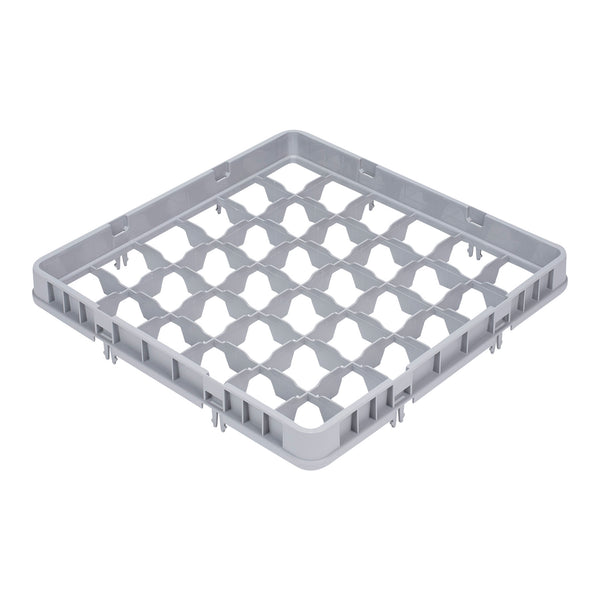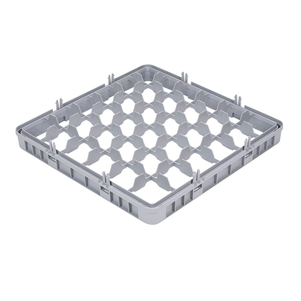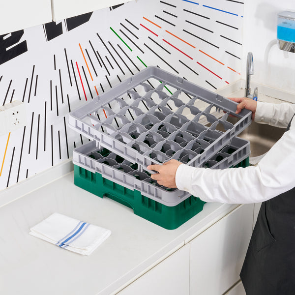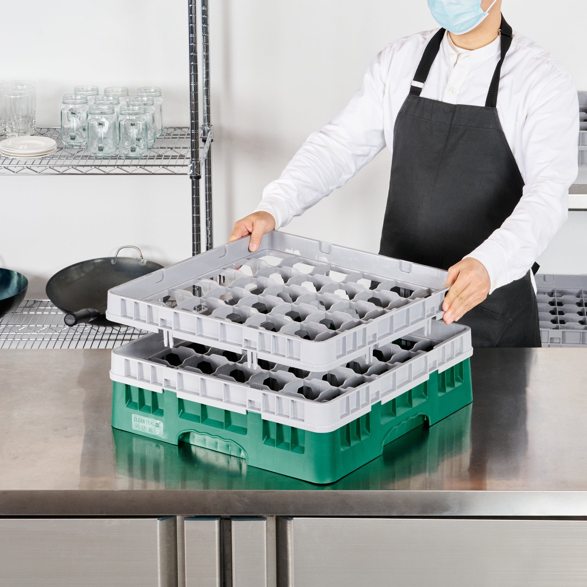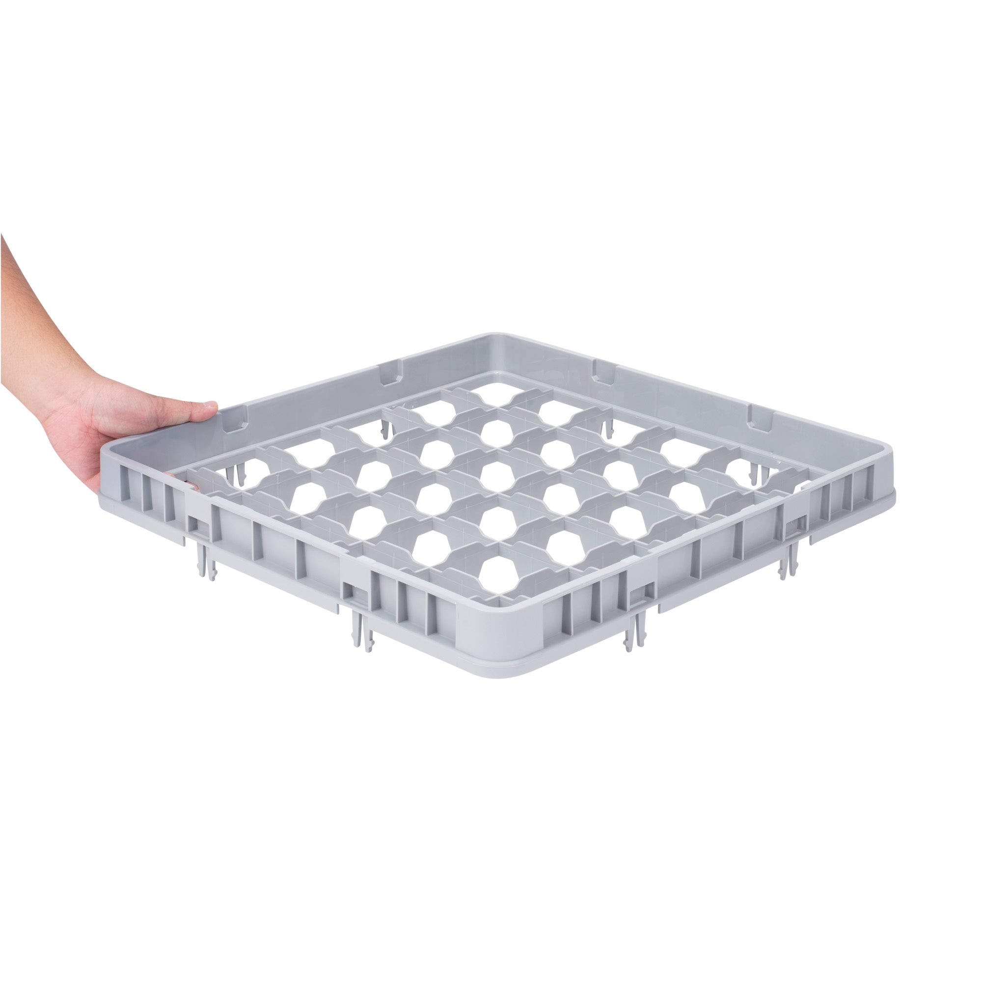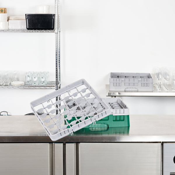Enhance your glassware storage with our Clean Tek Professional Gray Half Drop Extender. This half-drop glass rack extender pairs perfectly with our collection of compatible Clean Tek Professional glass racks, providing extra height to protect taller glassware. Designed to hold up to 36 glasses, this compartment rack offers ample space for various barware sizes. With open interior compartments, this dishwasher rack ensures enhanced cleaning, allowing every glass to sparkle. The solid external walls of this barware organizer provide robust protection during transport and storage. This commercial glass rack features an easy-to-handle design, making it a practical choice for quick and safe loading and unloading. Measuring 19.69 inches in length by 19.69 inches in width by 2.95 inches in height, this glassware storage perfectly fits your storage needs. Sold in a 1 count box. Glass rack is available and sold separately.