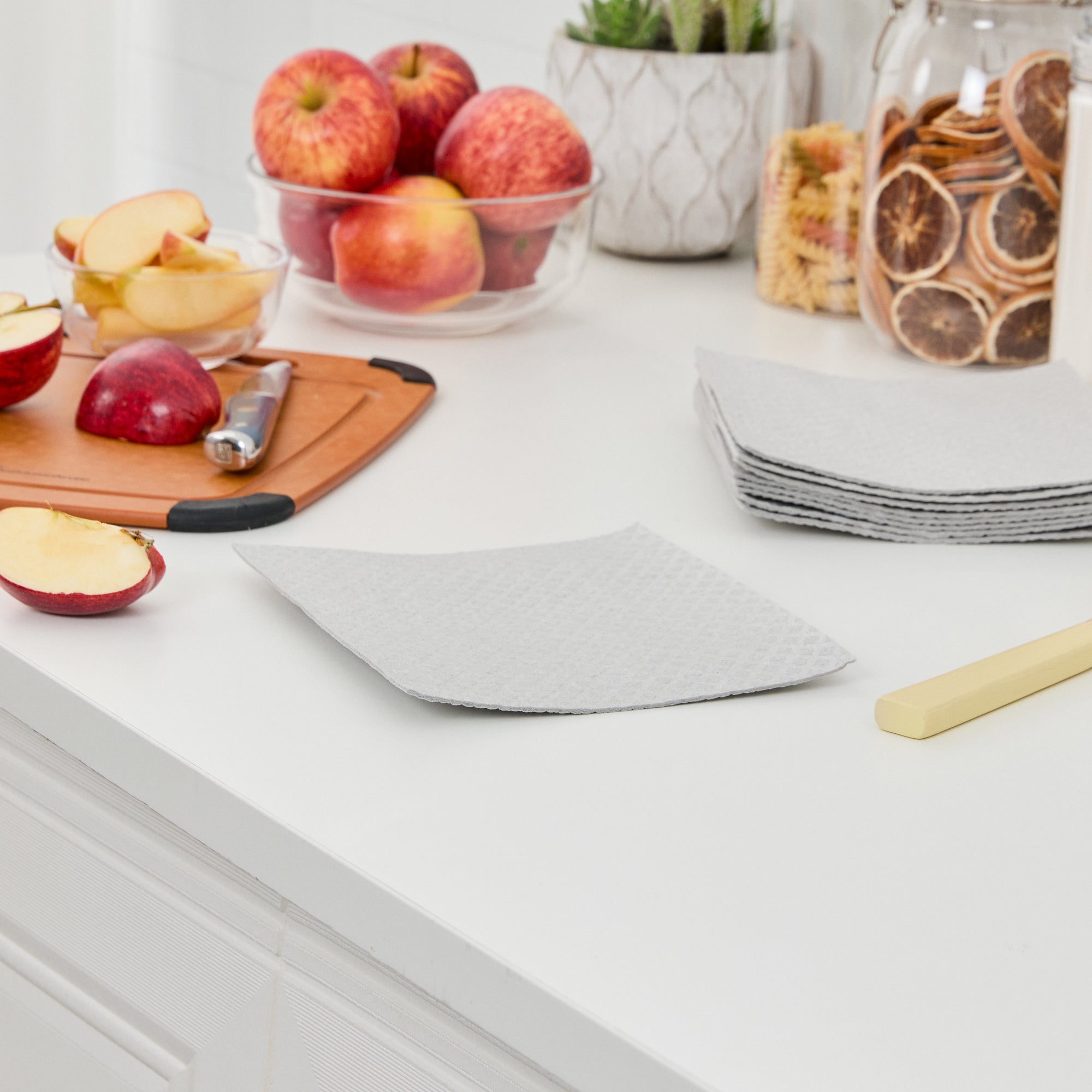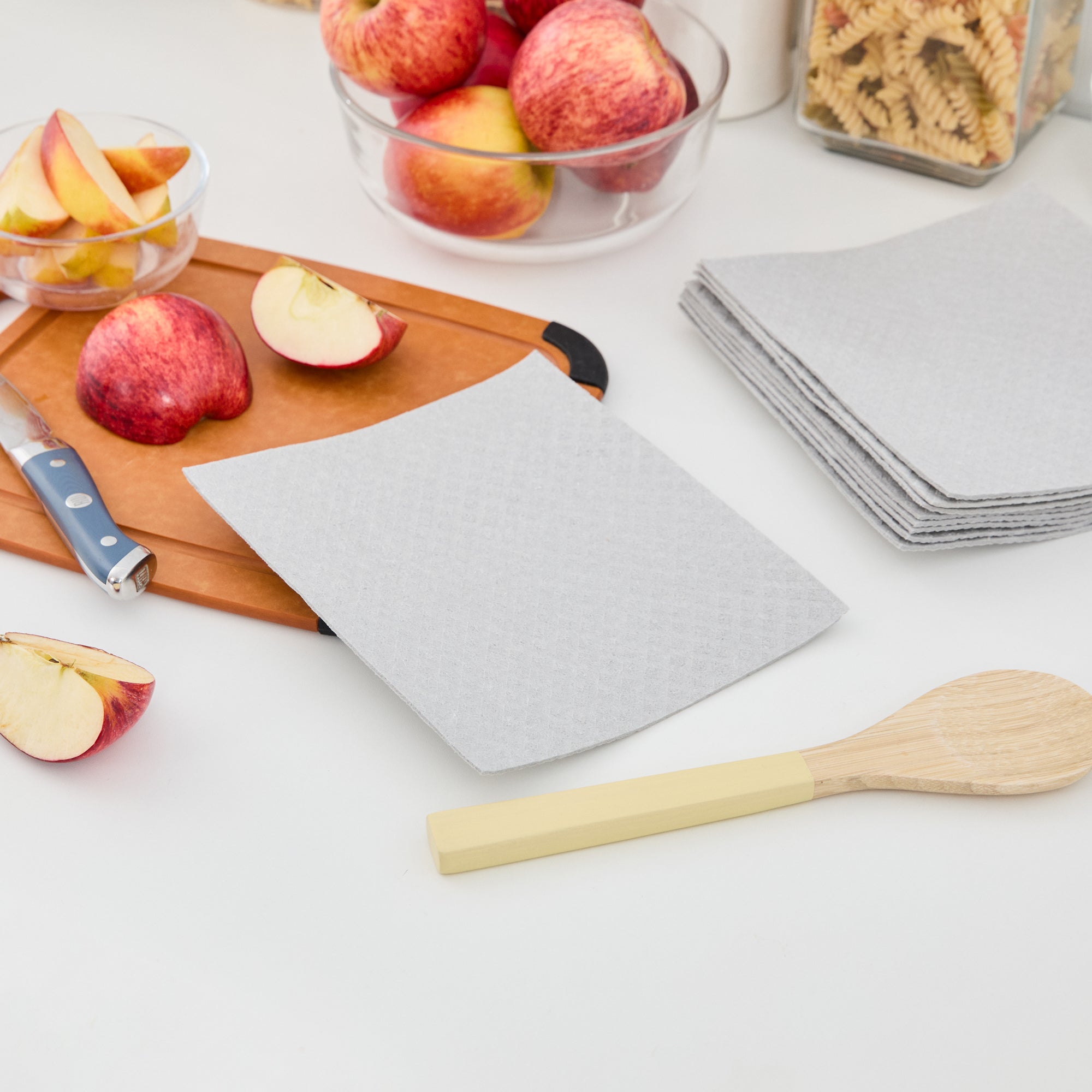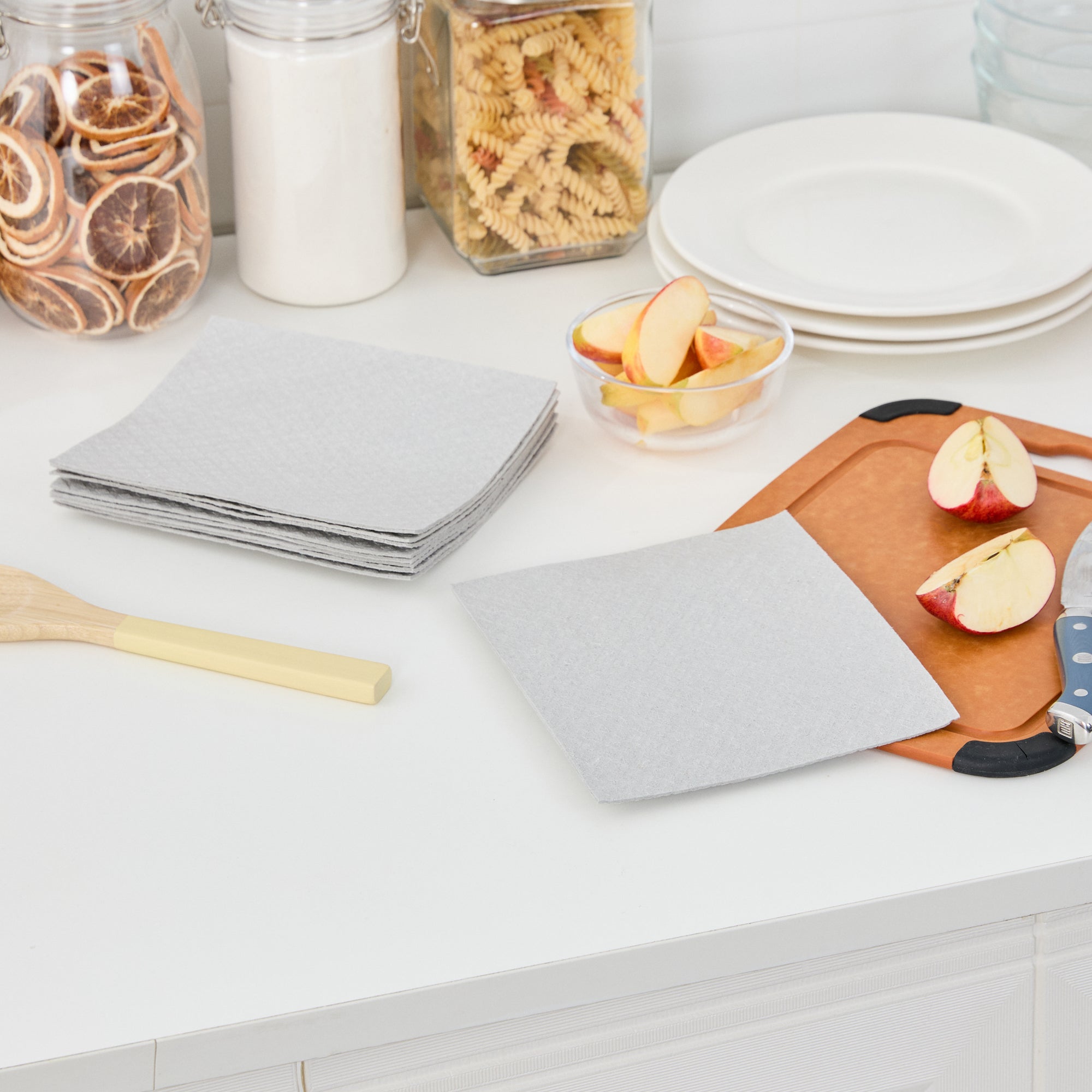 Improve cleaning efficiency with our Clean Tek Professional Gray Reusable Swedish Dishcloths. Made from super absorbent cellulose, these Swedish dishcloths offer powerful performance for wiping surfaces, scrubbing cookware, or drying counters. Designed to transition from soft to gritty when wet, these reusable cleaning cloths adapt easily to a variety of kitchen tasks. Crafted to support sustainable practices, these gray dishcloths are fully biodegradable and compostable, helping reduce environmental impact in commercial kitchens. Their durable construction makes them washable and reusable, offering a reliable alternative to disposable paper towels. Dishwasher-friendly for easy sanitization, these reusable dish towels simplify turnover in busy foodservice operations. Measuring 6.77 inches in length and 7.68 inches in width, these biodegradable dishcloths combine flexibility with long-lasting use. Sold in a 200 count box.