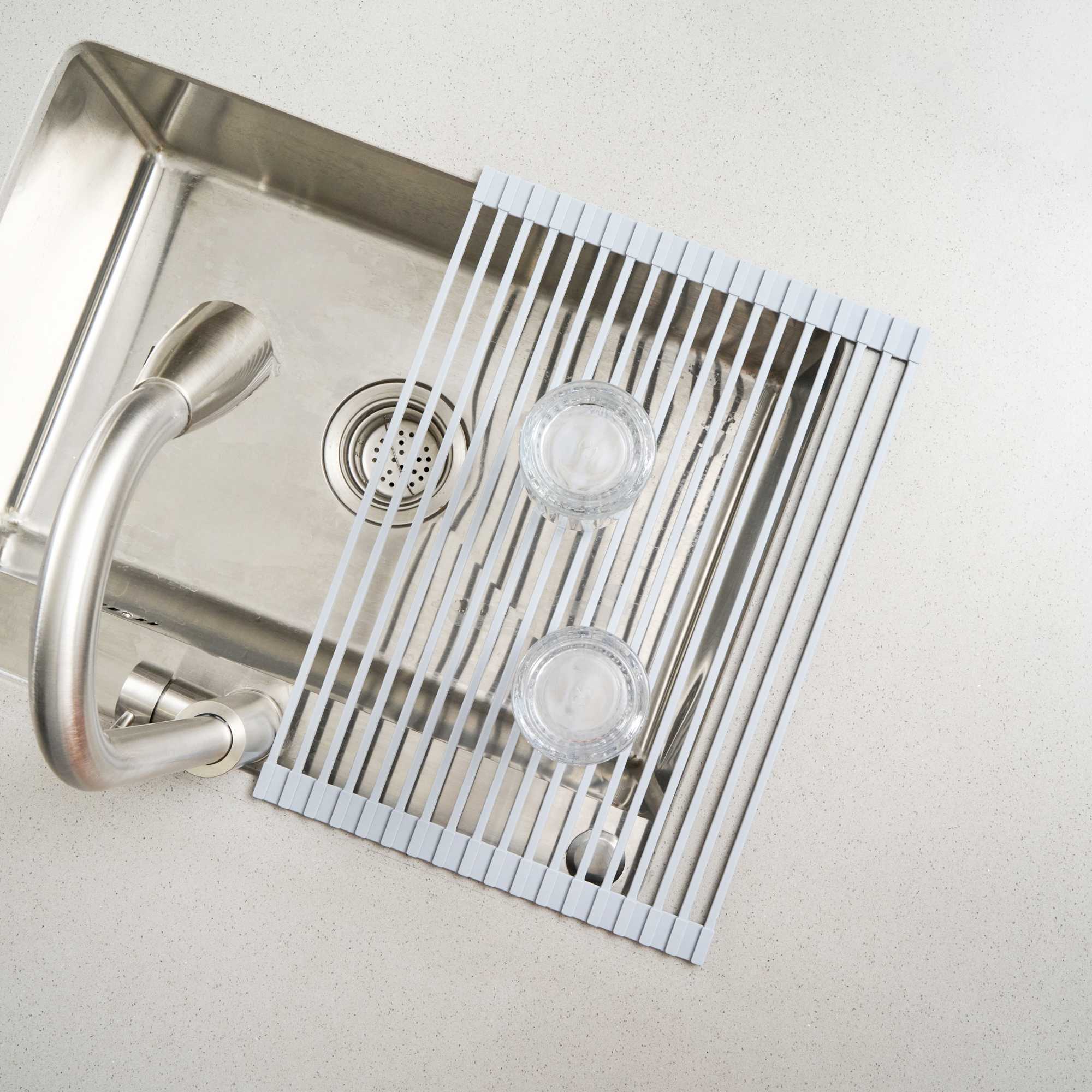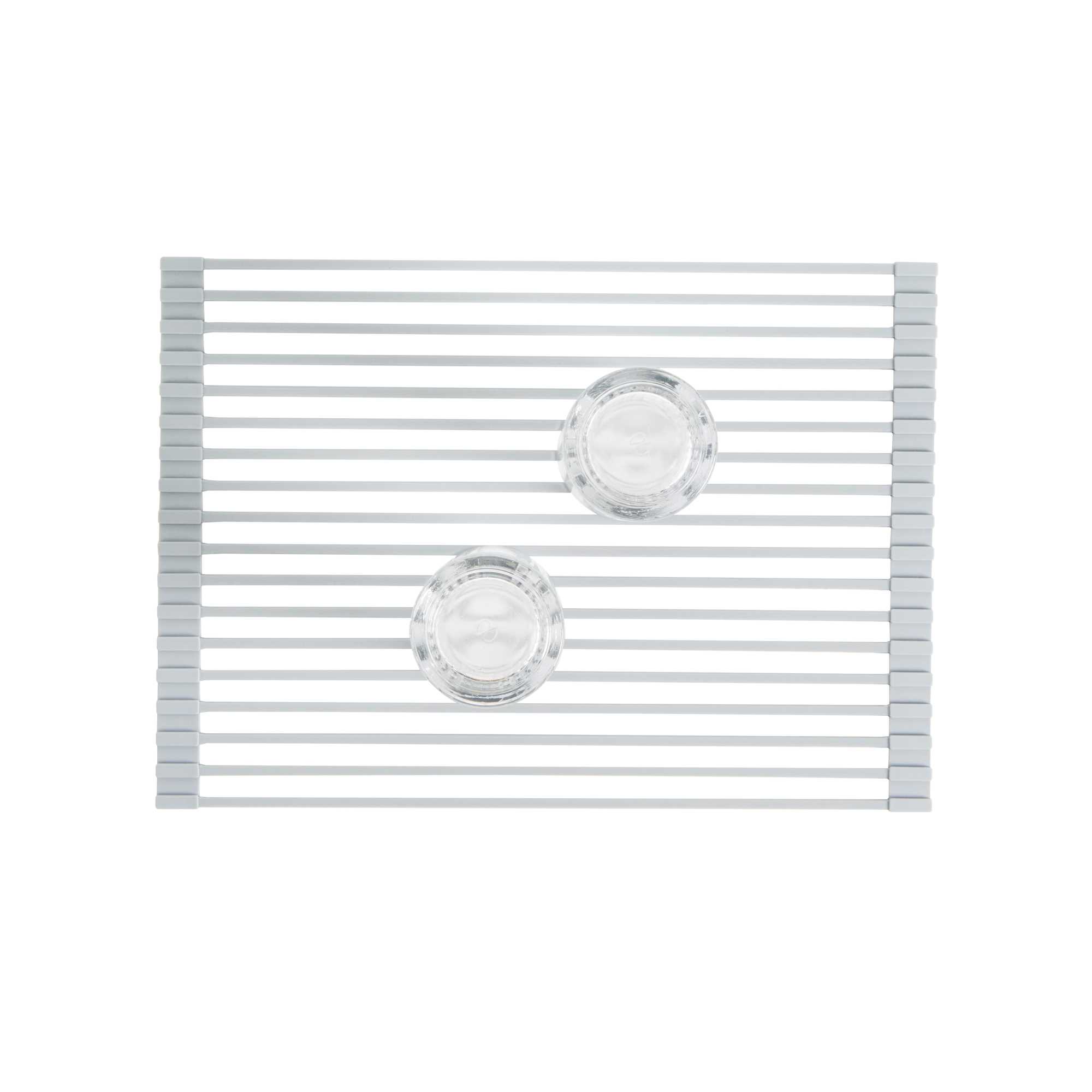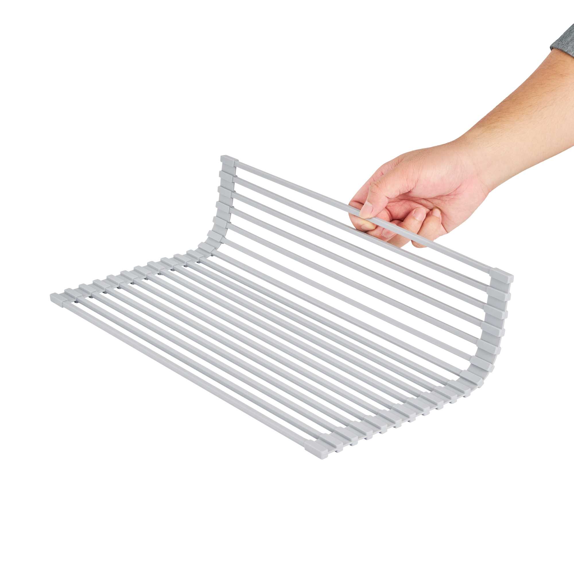 PROFESSIONAL GRAY STEEL OVER-SINK ROLL-UP DRYING RACK - NON-SLIP