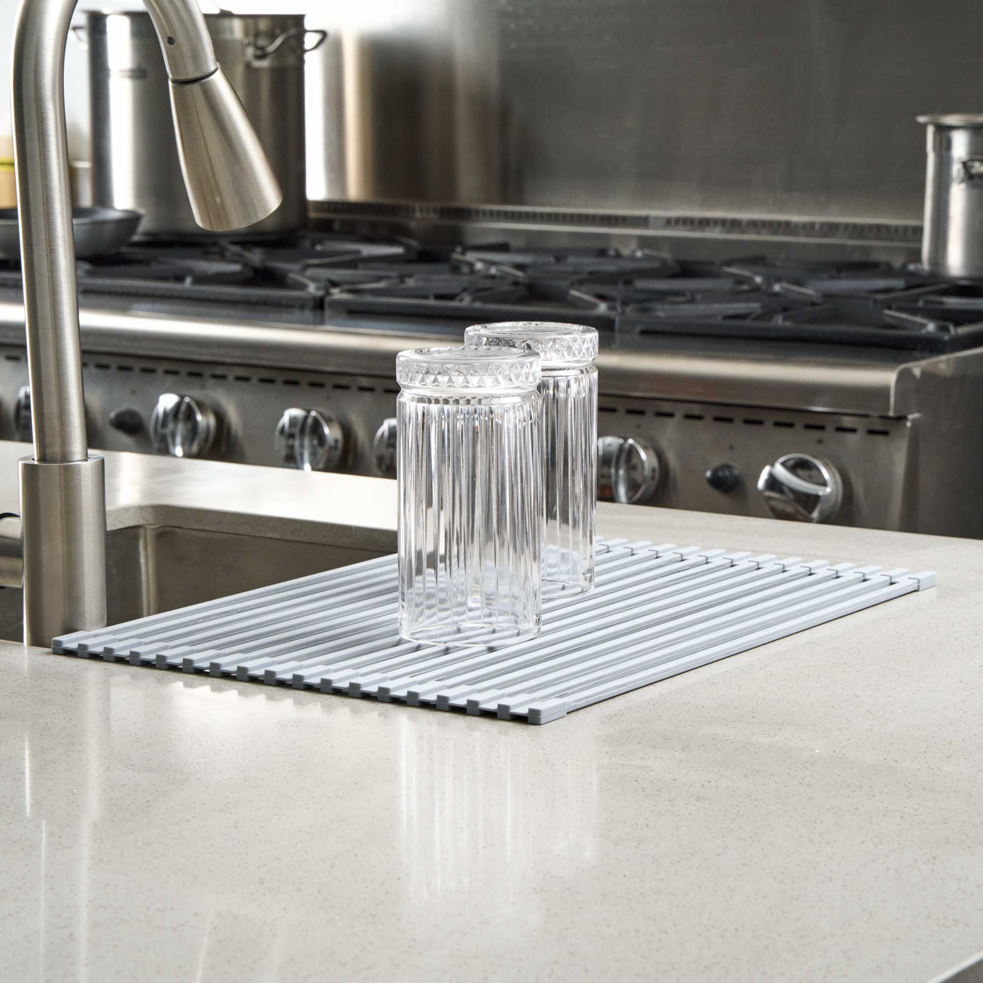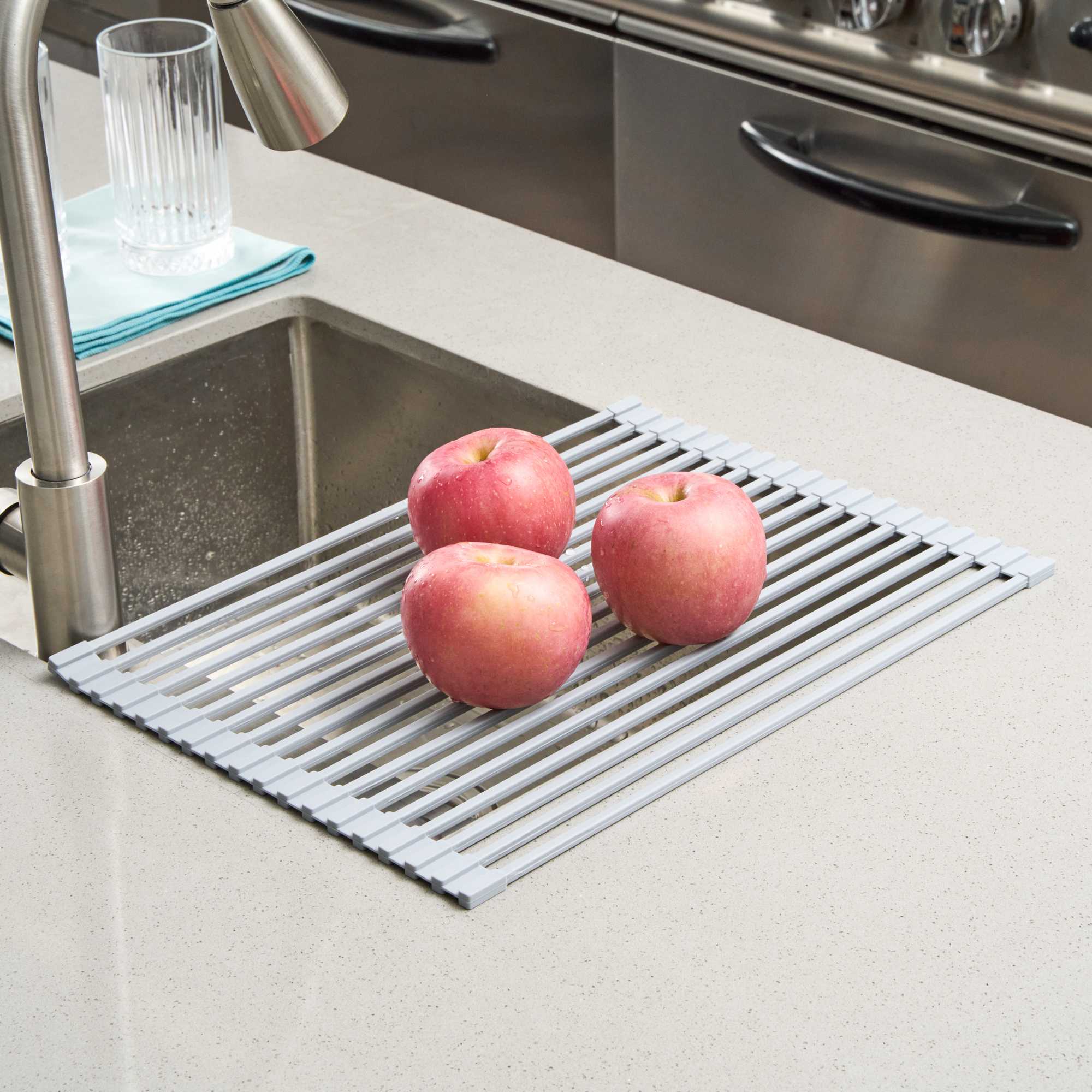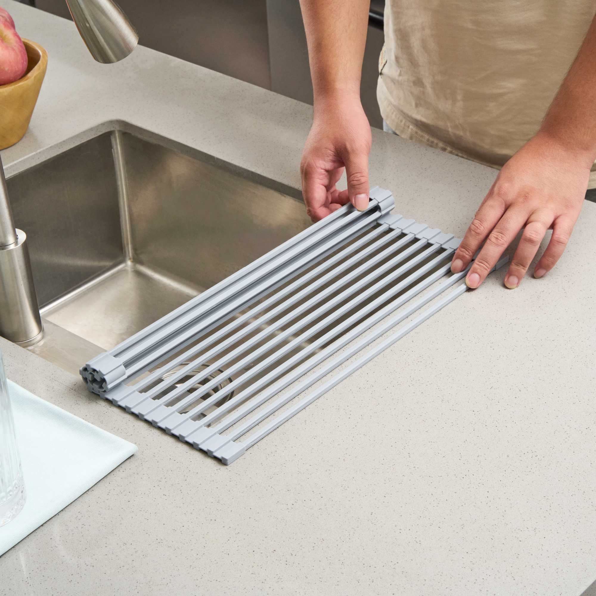PROFESSIONAL GRAY STEEL OVER-SINK ROLL-UP DRYING RACK - NON-SLIP
