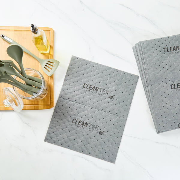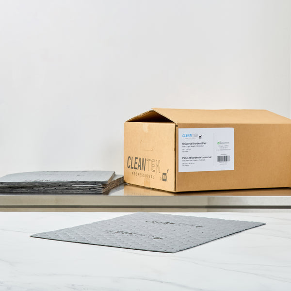 Ensure optimal spill management with versatile absorbent spill pads. Clean Tek Professional Absorbent Spill Pads effectively absorb all fluid types, including oils, coolants, solvents, and water, ensuring cleaner and safer workspaces. These oil absorbent pads are crafted from universal sorbent material, offering compatibility with harsh chemicals like hydrochloric acid, which supports safe handling in busy foodservice settings. Featuring a lightweight and perforated design, these spill cleanup pads allow for easy handling and precise application, reducing waste and improving operational efficiency. With generous dimensions of 14.9 inches by 18.8 inches, they provide ample coverage for spills, minimizing the number of pads needed and reducing overall costs. Perfect for commercial kitchens, food processing facilities, and catering events, these absorbent spill pads ensure prompt cleanup and maintain a professional appearance. Each order includes 100 Clean Tek Professional Absorbent Spill Pads.