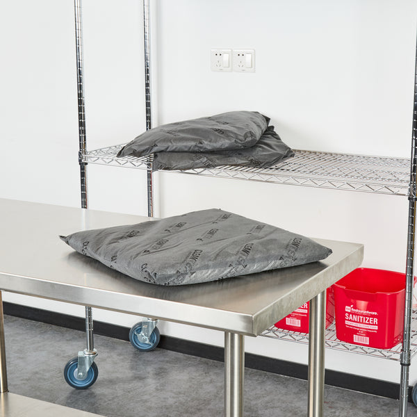 Enhance workplace safety with versatile spill management solutions. Clean Tek Non-Flammable Absorbent Pillows offer exceptional absorbency and strength due to their durable nonwoven polypropylene construction, effectively managing spills in tight spaces. These chemical absorbent pillows absorb a wide variety of fluids, including oil-based, water-based, and chemical-based liquids, providing comprehensive spill control in foodservice settings. Their non-flammable design minimizes fire hazards, making them suitable for use in industrial kitchens, laboratories, and restaurants. Measuring 18.11 inches by 18.11 inches with a height of 1.18 inches, these oil spill pillows ensure ample coverage to tackle larger spills efficiently. Compatible with acids, they support safe spill management in compliance with safety regulations. Elevate your spill control strategy with these absorbent pillows for a cleaner, safer workspace. Each order includes 10 Clean Tek Non-Flammable Absorbent Pillows.