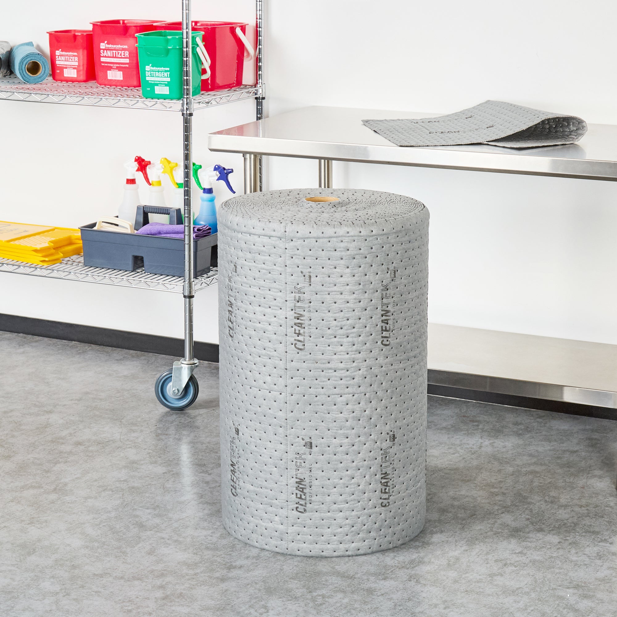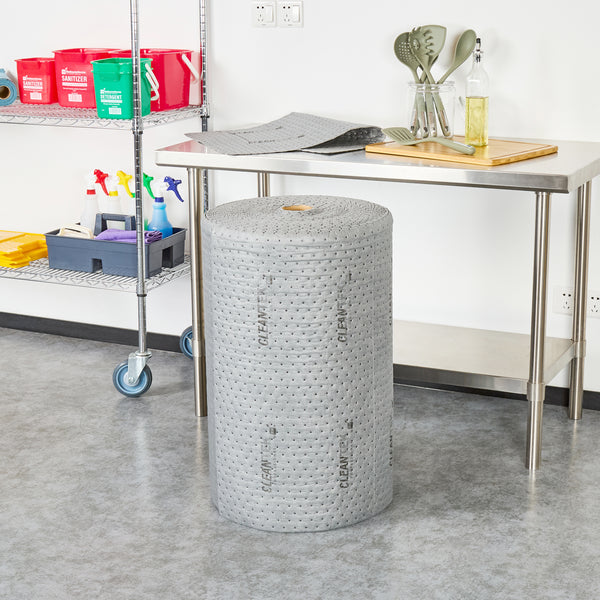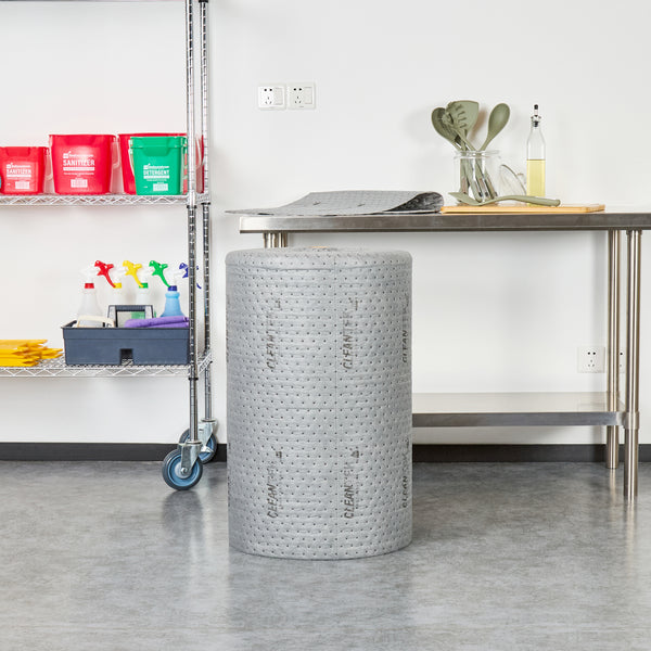 Ensure efficient spill management with versatile absorbent solutions. Clean Tek Professional Absorbent Universal Sorbent Rolls offer heavyweight construction that ensures maximum absorbency, making them ideal for industrial kitchens needing universal sorbent rolls to manage large spills quickly. The perforated design allows staff to easily tear and customize the roll size, minimizing waste and boosting operational efficiency. These oil spill absorbent rolls are crafted from durable polypropylene, which resists tearing and is suitable for absorbing oils, coolants, solvents, and water, enhancing versatility in various commercial settings. Measuring 150 feet in length and 30 inches in width, they cover extensive areas, making them perfect for food processing plants and catering services. Invest in reliable spill control solutions to maintain cleanliness and safety. Each order includes 1 Clean Tek Professional Absorbent Universal Sorbent Roll.
