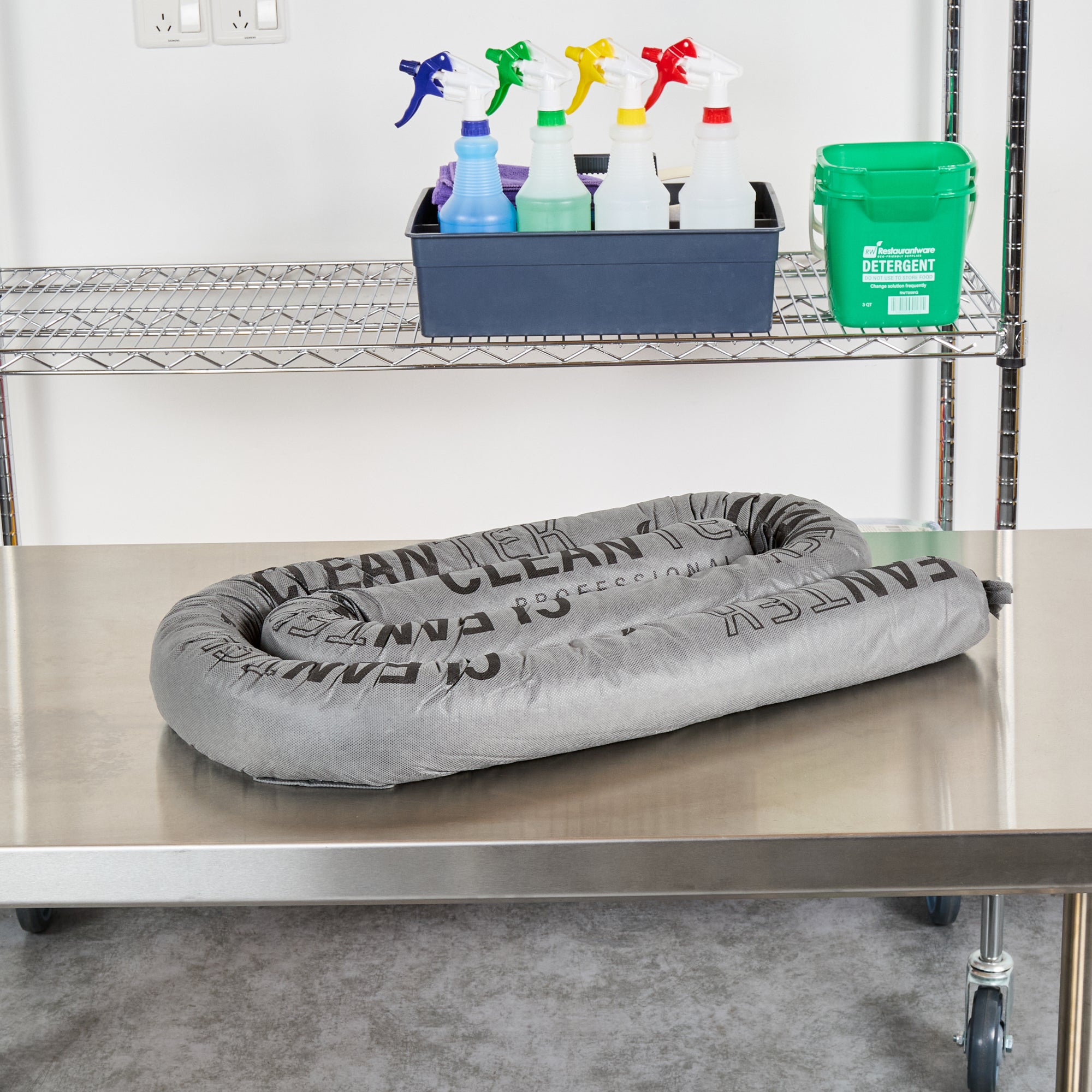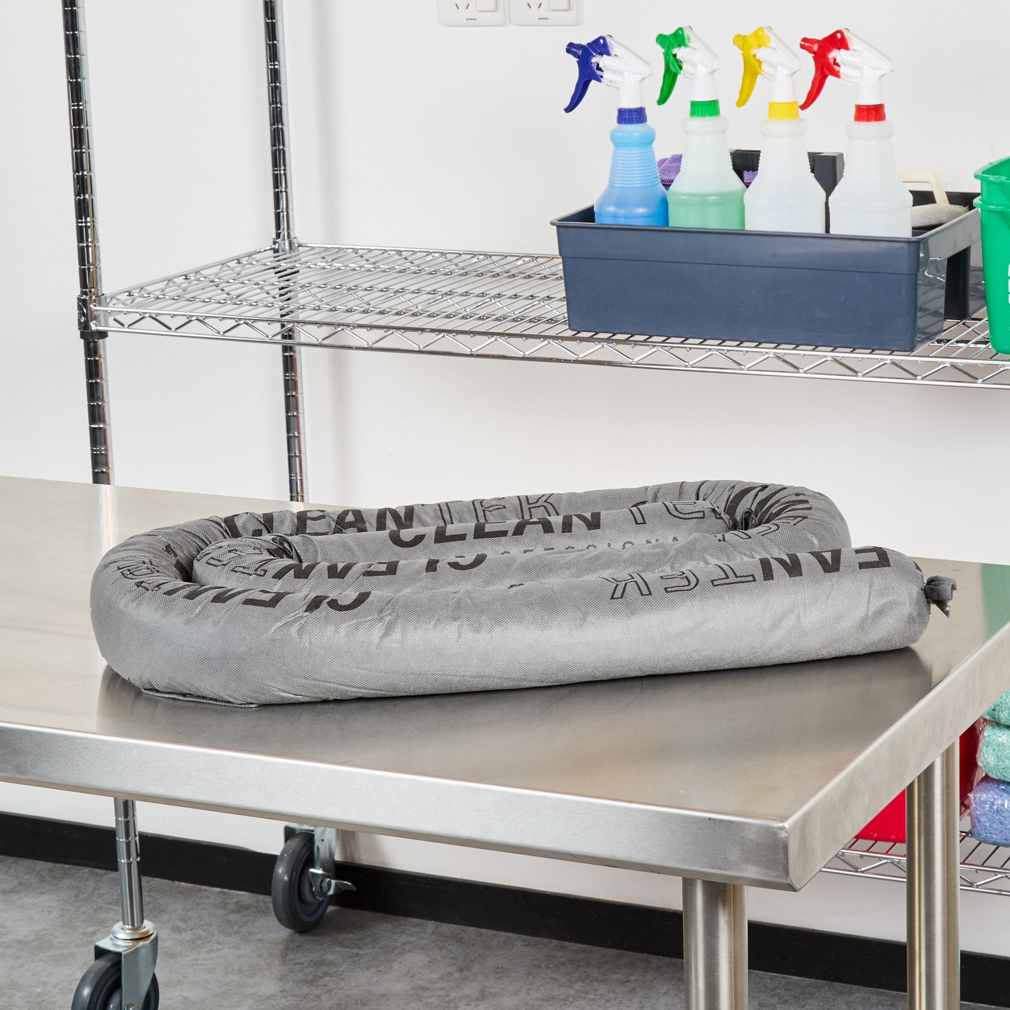 Ensure rapid spill management with versatile absorbent socks. Clean Tek Professional Absorbent Socks are crafted from a universal sorbent material, which efficiently absorbs all oil-based, water-based, and chemical-based fluids, providing safer spill management in bustling kitchens and food processing facilities. Boasting a non-flammable design, these socks significantly reduce fire hazard risks, making them ideal for environments where safety is paramount. With a flexible length of 94.5 inches, these spill control socks easily wrap around spills, preventing further spread and ensuring quick containment. The durable gray outer sleeve resists tearing, keeping the absorbent material intact and reducing cleanup time. Additionally, these chemical absorbent socks are compatible with acids, offering versatile cleanup solutions for unexpected leaks or spills. Each order includes 1 Clean Tek Professional Absorbent Sock.