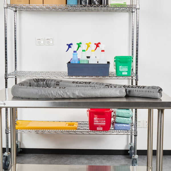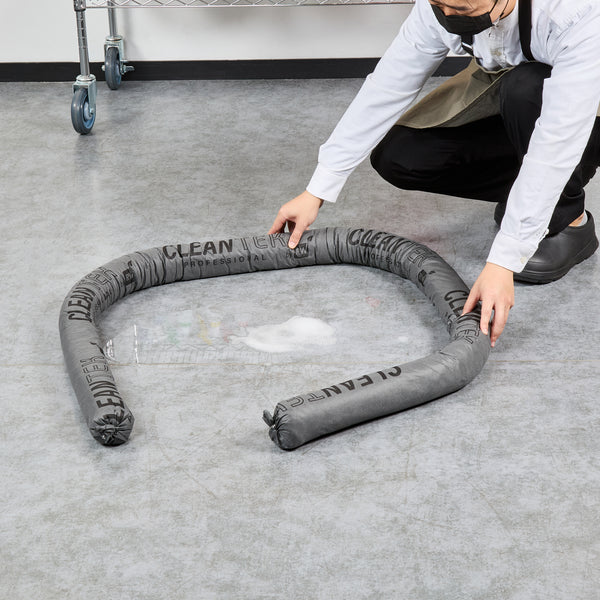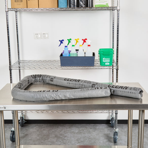 Ensure safety and efficiency with versatile absorbent socks. Clean Tek Professional Absorbent Socks are designed to effectively manage spills by absorbing all oil-based, water-based, and chemical-based fluids, making them ideal for maintaining cleanliness in high-traffic foodservice environments. These spill containment socks are compatible with hydrochloric acid, allowing you to handle chemical spills confidently without compromising safety. Measuring 8 feet in length and 3 inches in diameter, their flexible construction easily molds around equipment and corners, providing thorough spill containment. Made from nonwoven material, these industrial spill socks are non-flammable, offering enhanced safety for kitchens and other foodservice areas. The gray color helps mask dirt and grime, keeping your space looking pristine and professional. Equip your operation with these reliable tools and be prepared for any spill situation. Each order includes 4 Clean Tek Professional Absorbent Socks.