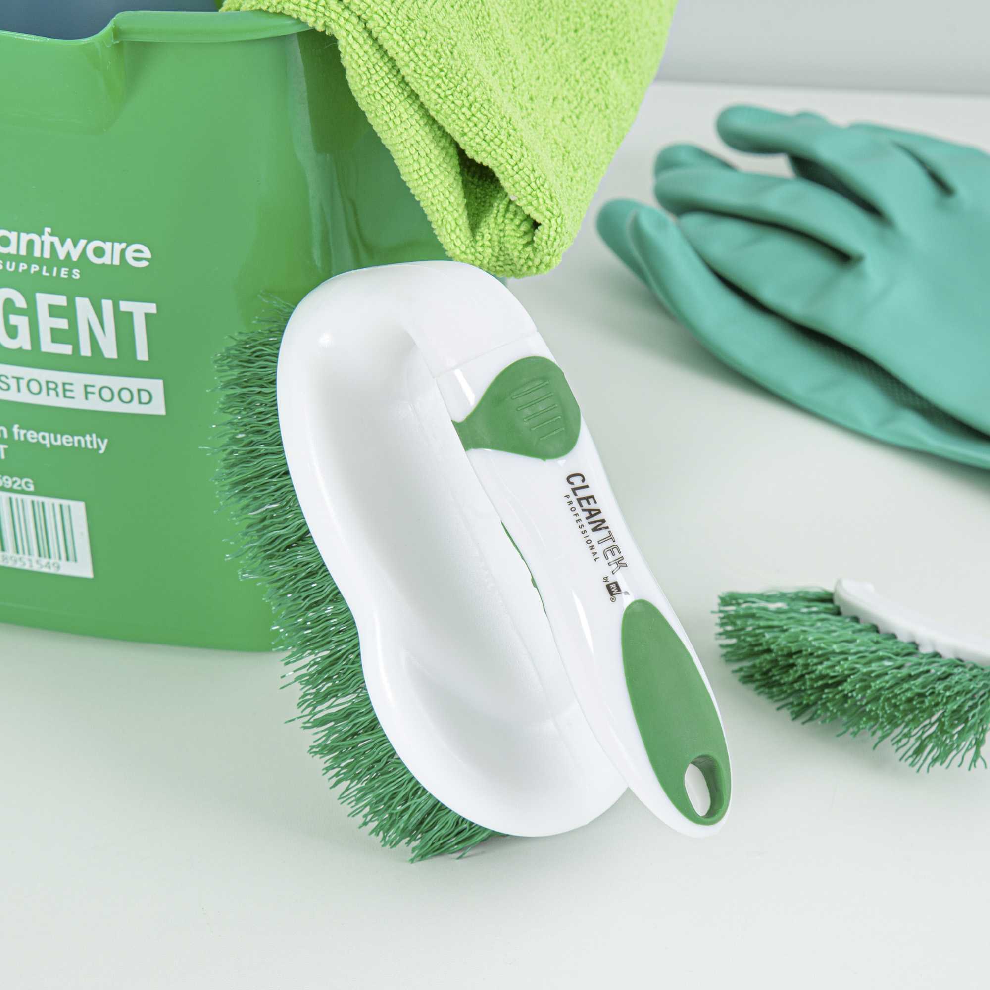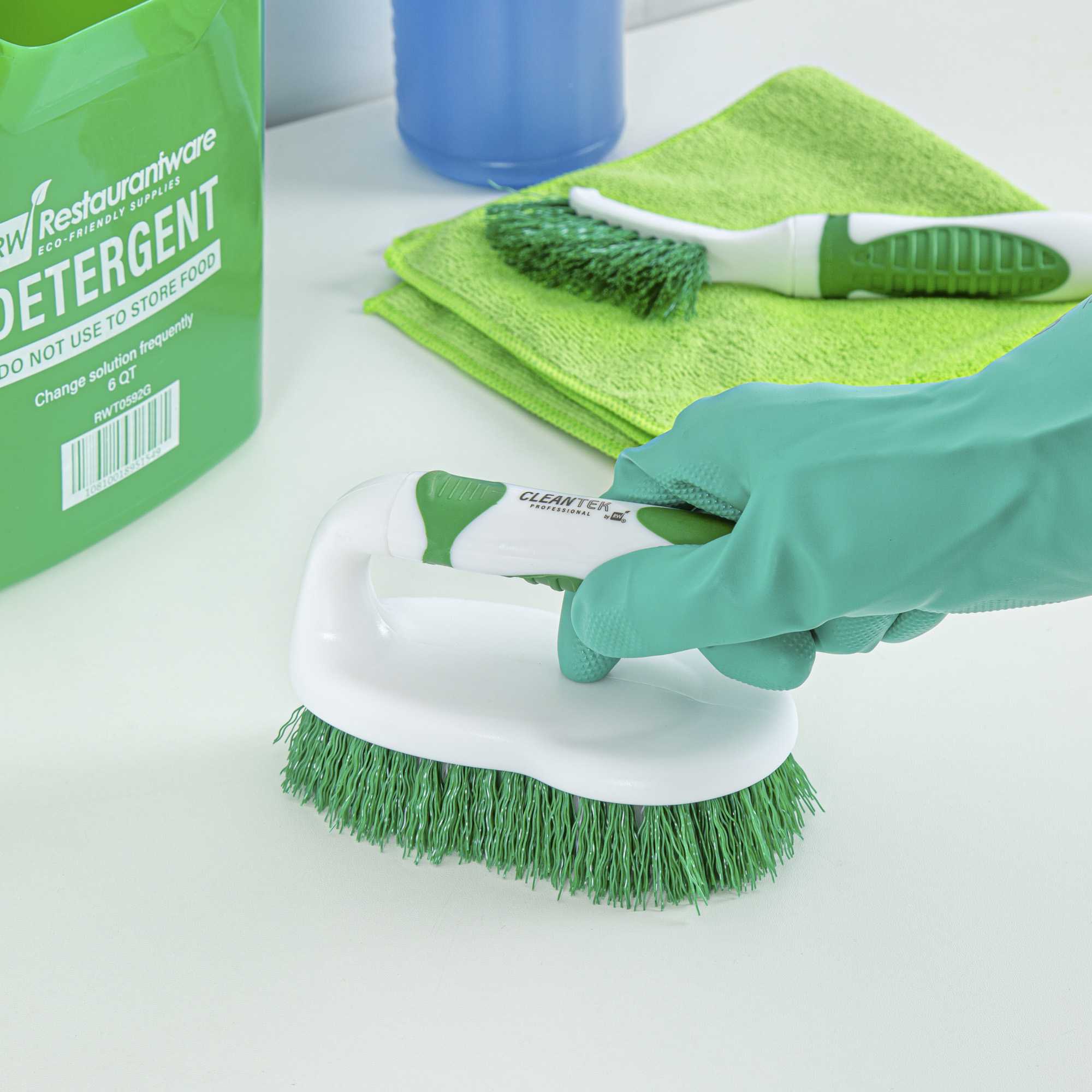 Achieve spotless results with the Clean Tek Professional Ergonomic Grip Bathroom Scrub Brush. This bathroom scrub brush features a 3-centimeter bristle length that ensures deep cleaning of various surfaces, making it ideal for tackling tough bathroom grime. Its green and white handle offers easy identification, while the sturdy plastic construction provides a reliable grip that enhances cleaning efficiency. As a tile cleaning brush, its compact 5.9-inch by 2.8-inch by 3.9-inch dimensions allow it to reach tight spaces effortlessly, ensuring no corner is left untouched. Designed with strong bristles, this heavy-duty scrub brush can handle both hard and soft scrubbing tasks on tubs, tile walls, and floors, making it a versatile addition to any cleaning arsenal. Enhance your cleaning routine with this tool that combines functionality and sustainability. Each order includes 1 Clean Tek Professional Ergonomic Grip Bathroom Scrub Brushes.
