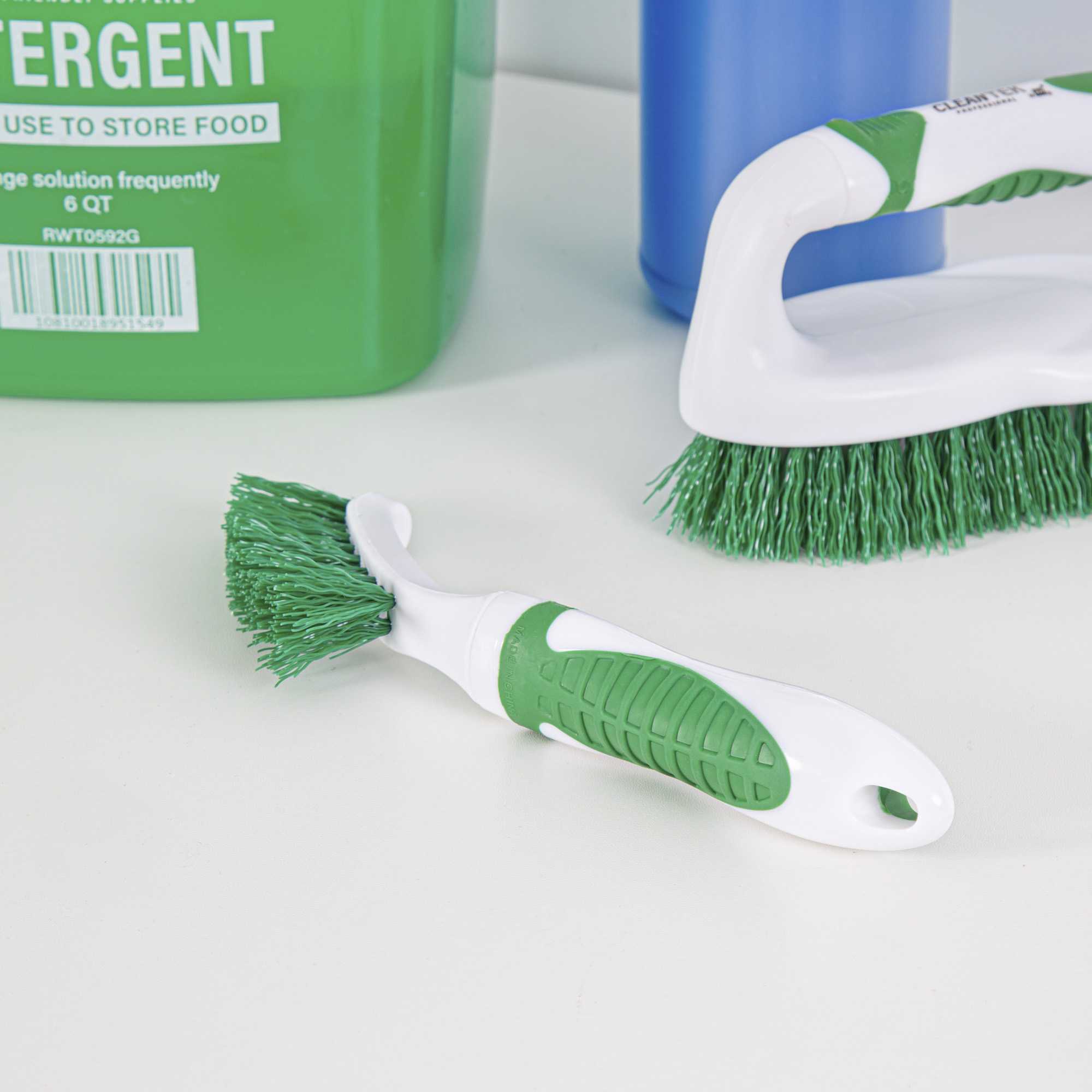 Effortlessly tackle stubborn grout lines with precision. The Clean Tek Professional Angled Head Grout Cleaning Brush – Green+White features angled bristles specifically designed to target grout lines for a deep clean, ensuring your surfaces are spotless and hygienic. This grout cleaning brush boasts a narrow brush design, perfect for scrubbing grout in tiled areas without missing a spot. Equipped with an ergonomic rubber grip handle, this tile scrubbing brush provides comfort and control, especially in tight kitchen spaces. The green PET bristles offer durability, allowing this stiff bristle grout brush to withstand repeated use in high-traffic settings. Incorporate this indispensable tool measuring 9 inches into your cleaning routine to maintain the pristine condition of your tiled surfaces. Each order includes 10 Clean Tek Professional Angled Head Grout Cleaning Brushes – Green+White.