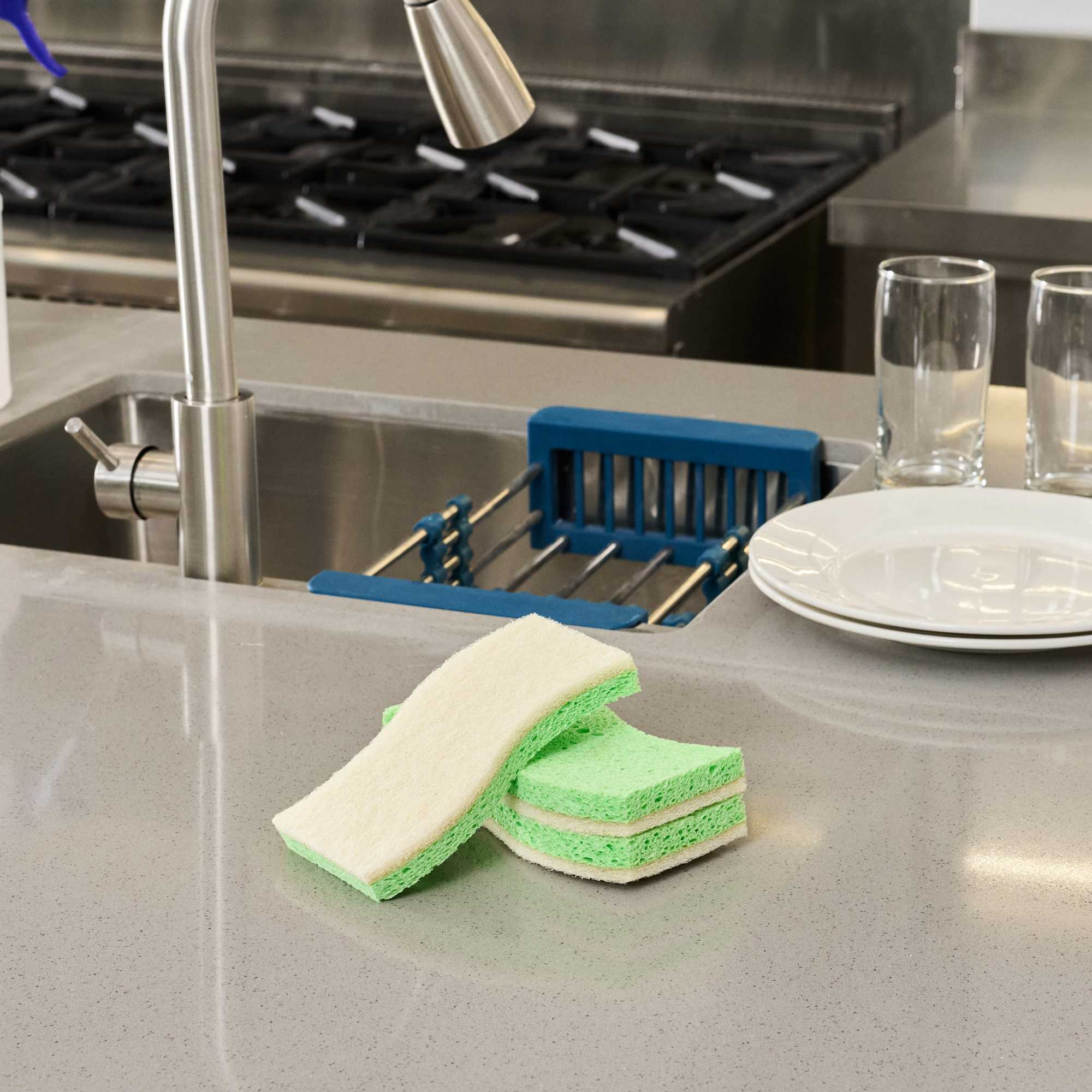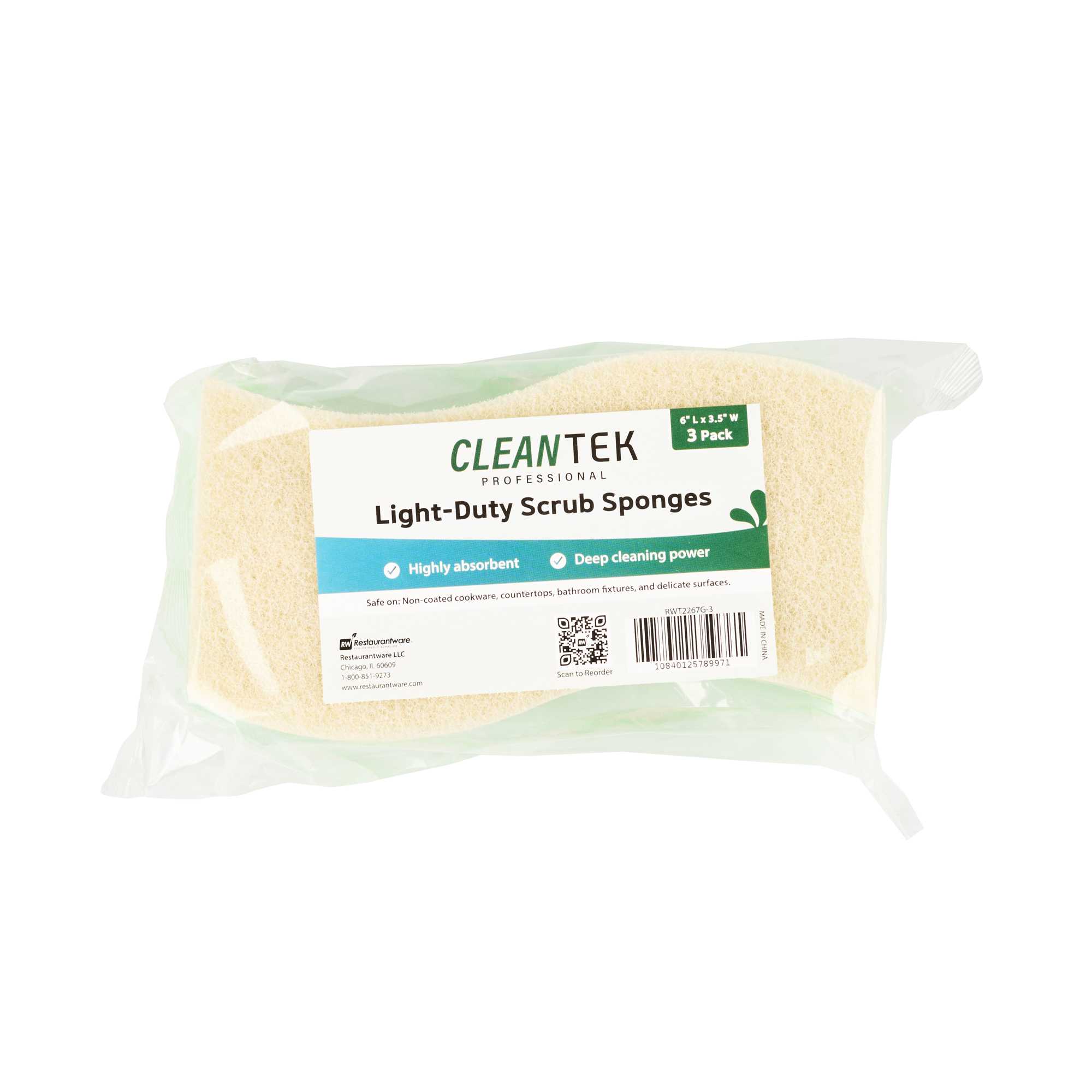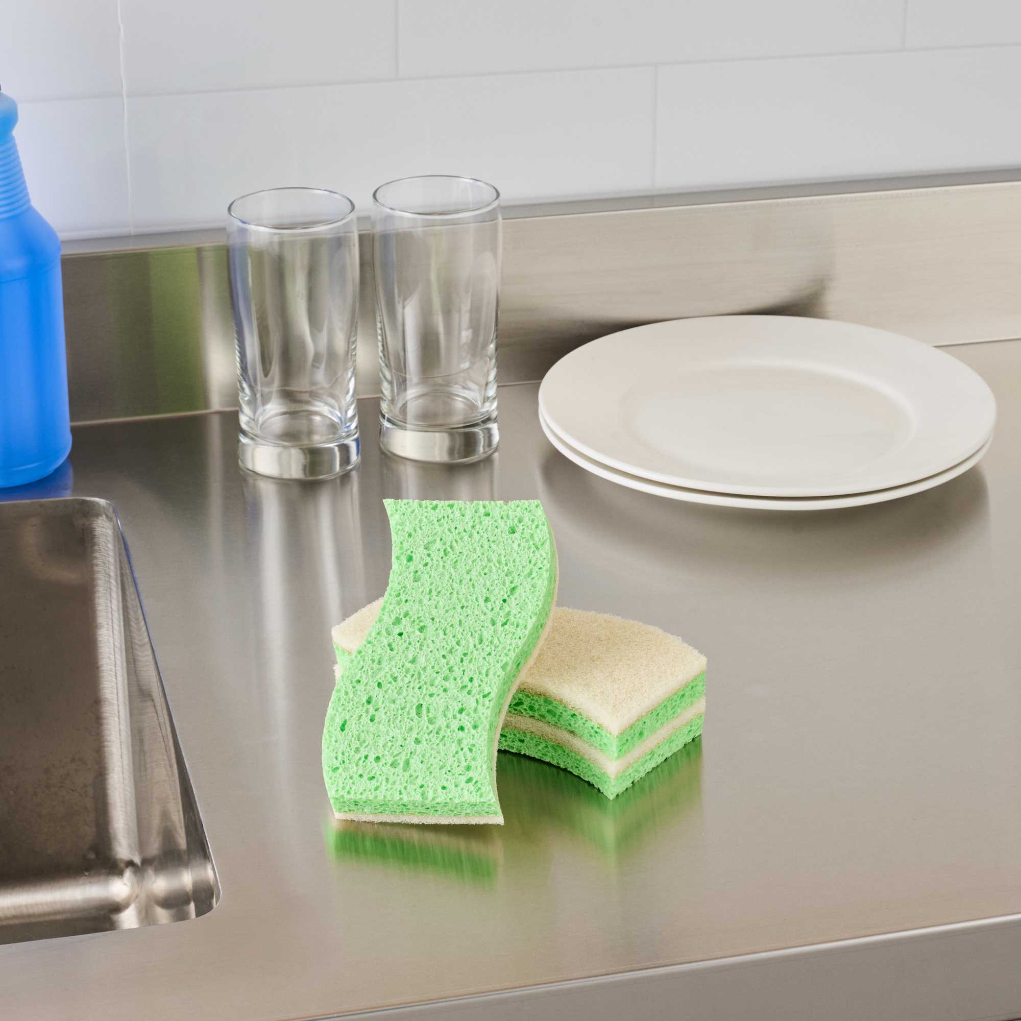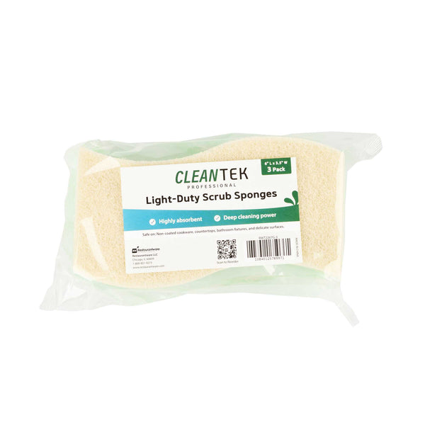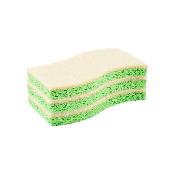 Maximize cleaning efficiency with our Clean Tek Professional Green Cellulose Sponge / White Light-Duty Scouring Pad Combos. The dual-sided, flexible sponge in green and white features both a sponge and a scouring pad for comprehensive cleaning tasks. Its wavy shape ensures an easy grip, enabling efficient cleaning throughout commercial kitchens. These cellulose sponges quickly absorb spills, minimizing downtime and maintaining productivity in bustling settings. With a light-duty scouring pad, these dual-sided sponges safely clean delicate surfaces, making them ideal for a variety of cleaning applications such as walls, railings, floors, and countertops. These sponges measure 5.98 inches in length by 3.5 inches in width. Sold in a 3 count box.