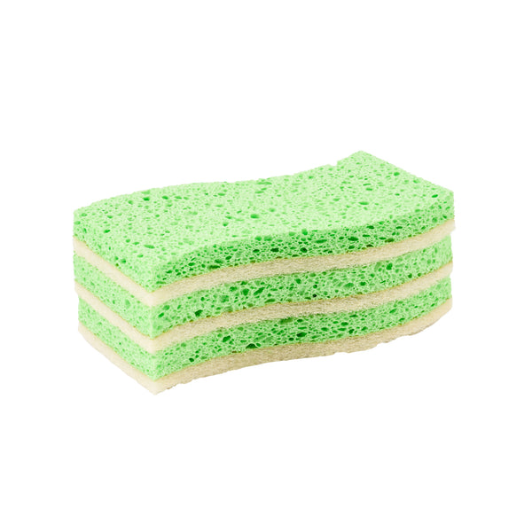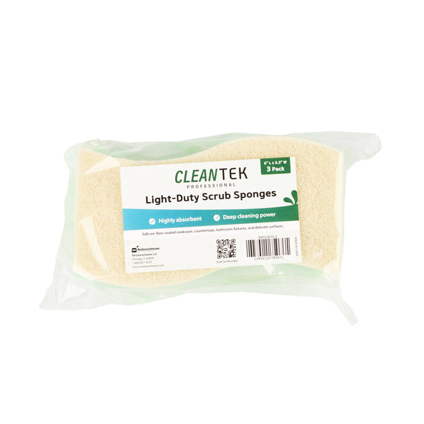 Maximize cleaning efficiency with our Clean Tek Professional Green Cellulose Sponge / White Light-Duty Scouring Pad Combos. The dual-sided, flexible sponge in green and white features both a sponge and a scouring pad for comprehensive cleaning tasks. Its wavy shape ensures an easy grip, enabling efficient cleaning throughout commercial kitchens. These cellulose sponges quickly absorb spills, minimizing downtime and maintaining productivity in bustling settings. With a light-duty scouring pad, these dual-sided sponges safely clean delicate surfaces, making them ideal for a variety of cleaning applications such as walls, railings, floors, and countertops. These sponges measure 5.98 inches in length by 3.5 inches in width. Sold in a 60 count box.