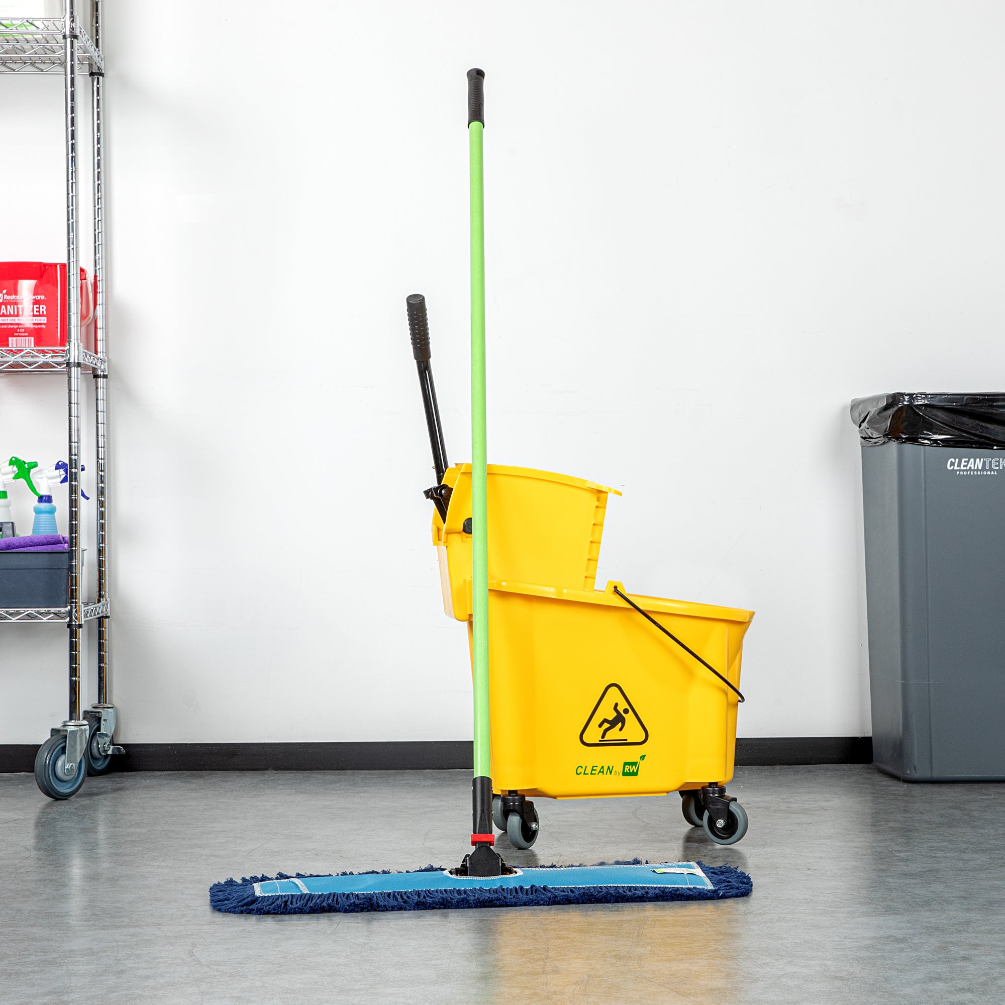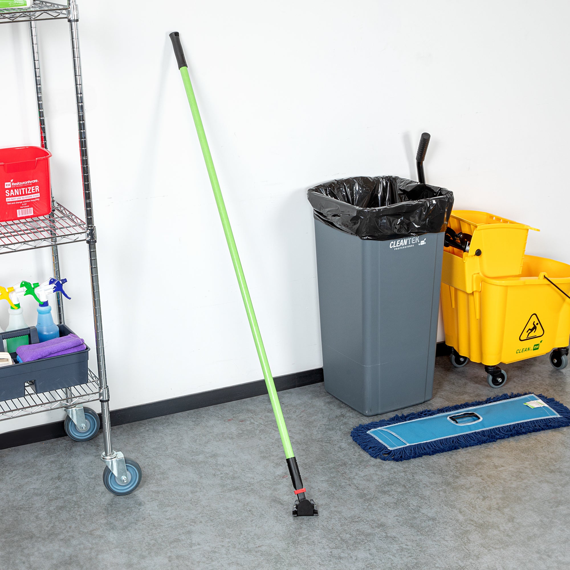 Optimize your cleaning routine with our Clean Tek Professional Green Fiberglass Dust Mop Handle. This long mop handle is expertly designed to pair with our collection of compatible Clean Tek Professional mop frames and mop heads for a complete and efficient cleaning solution. Equipped with a metal head and clamp, this heavy-duty mop handle firmly holds the mop frame in place, ensuring stability and secure attachment during cleaning tasks. For user comfort, the PP grip on this dry mop handle reduces strain and fatigue during extended use. Crafted from premium fiberglass, this dust mop handle withstands daily use for long-lasting performance. Measuring 63.98 inches in length, this mop handle provides extended reach, making it easier to clean large areas with minimal effort. Sold in a 1 count box. Mop frame and head are available and sold separately.