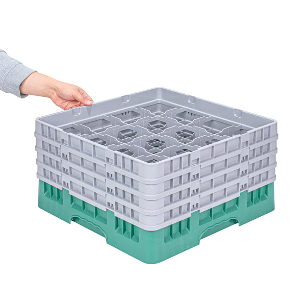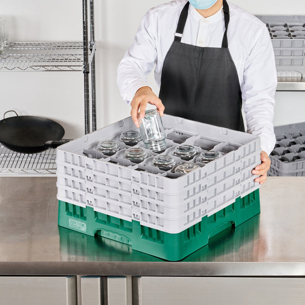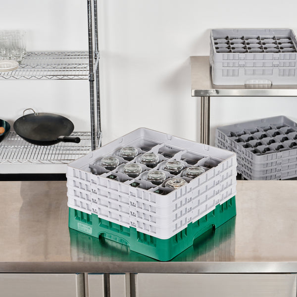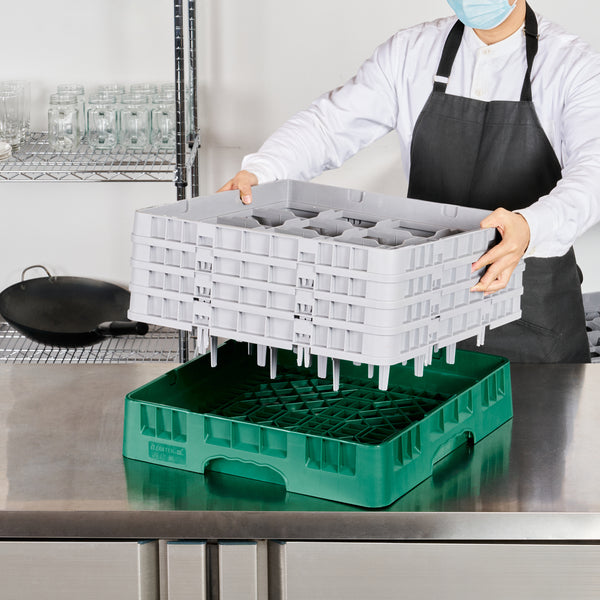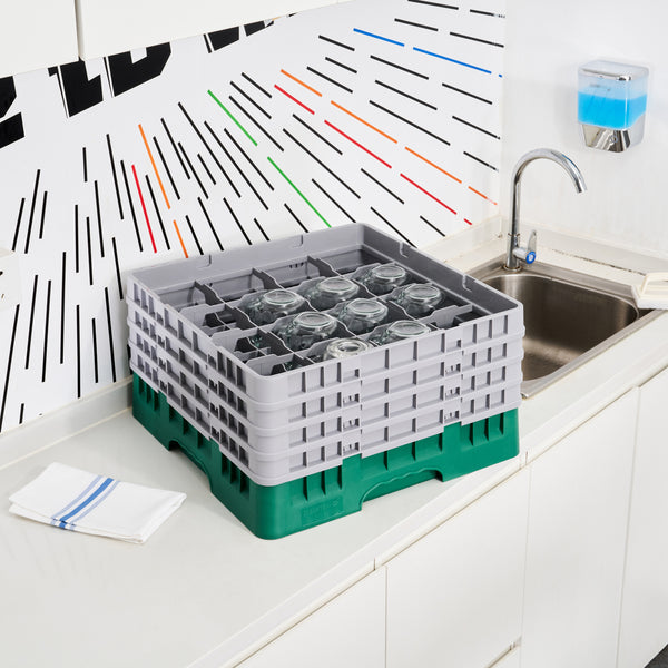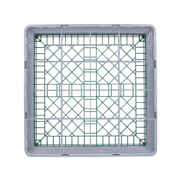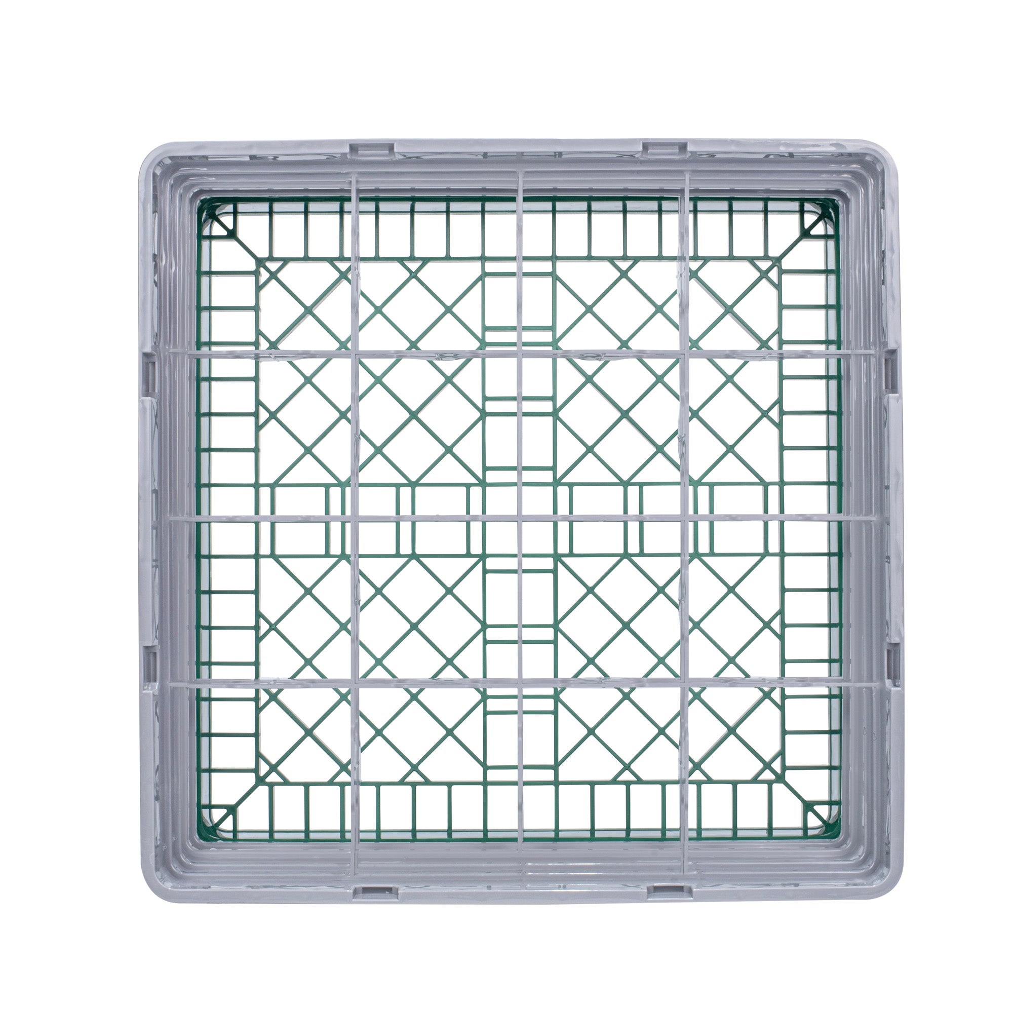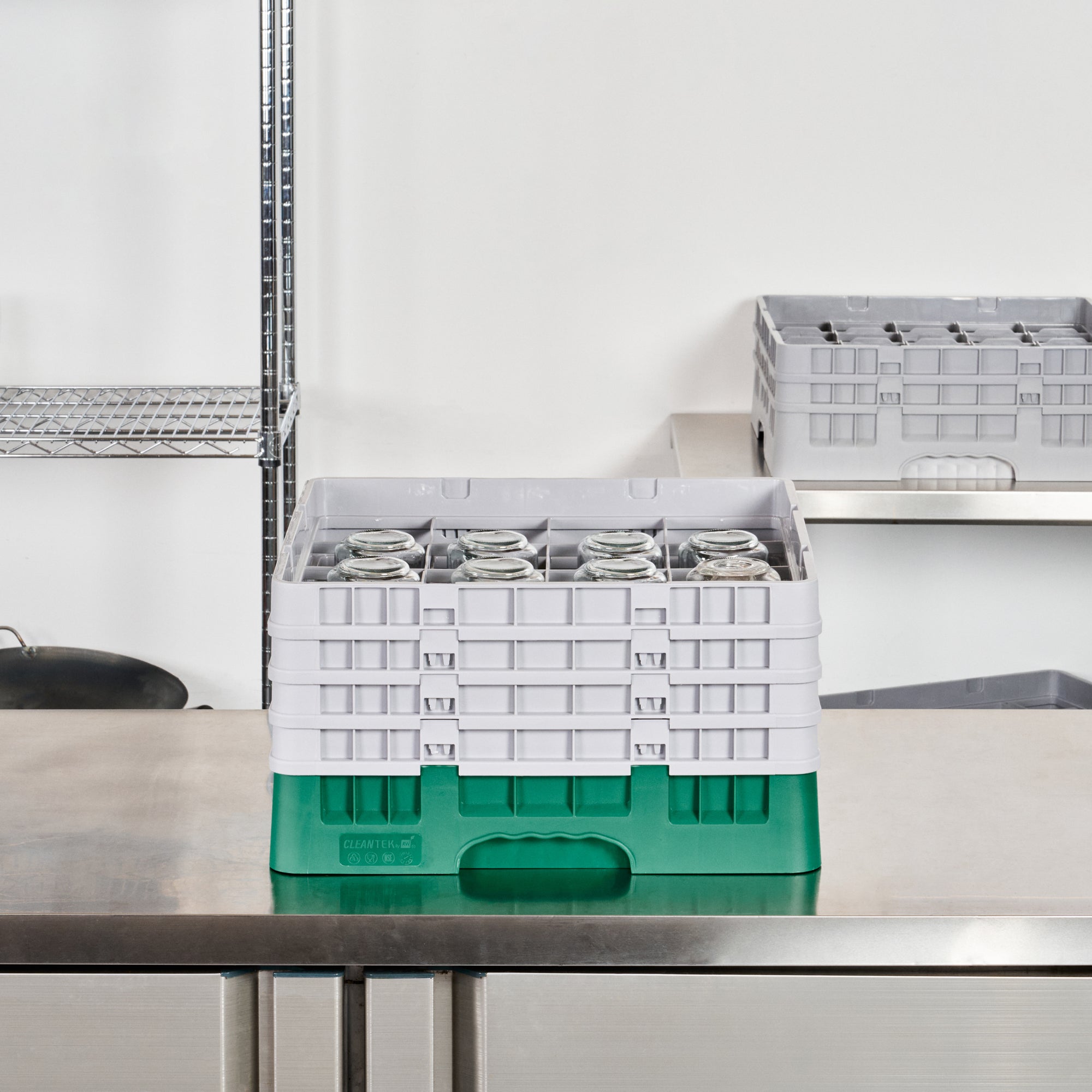 Ensure your glassware is safely stored and easily accessible with our Clean Tek Professional Green Glass Rack. This commercial glass rack features 16 compartments, providing ample space for organized glassware storage. Equipped with a full drop extender and three half drop extenders, this dishwasher rack accommodates various glass sizes and shapes. Constructed from durable PP, this compartment rack is built to withstand the demands of a busy kitchen or bar environment. The easy-to-handle design of this barware organizer simplifies the process of loading and unloading glassware. Featuring open interior compartments, this glass rack ensures thorough cleaning and drying. Solid external walls provide added stability, making this commercial glass rack a reliable choice for any foodservice operation. Measuring 19.69 inches in length by 19.69 inches in width by 10.51 inches in height, this glassware storage rack maximize your workspace efficiency. Sold in a 1 count box.