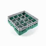 GREEN GLASS RACK - 16 COMPARTMENTS, 1 FULL DROP EXTENDER
