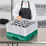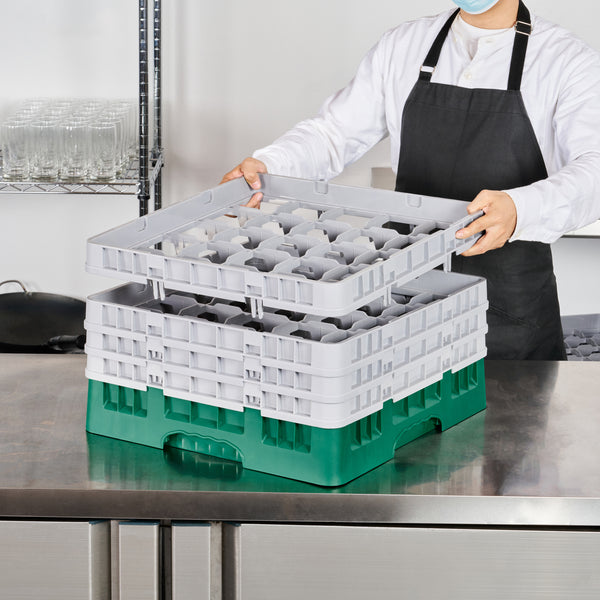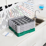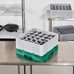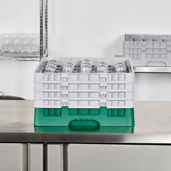 Elevate your glassware storage solutions with our Clean Tek Professional Green Glass Rack. This commercial glass rack features 25 compartments, ensuring each piece of glassware is securely stored and protected. Designed with a full drop extender, this dishwasher rack allows for seamless integration into any cleaning system. Three half drop extenders enhance the versatility of this barware organizer, adapting to various glass sizes and shapes. Crafted from durable PP, this compartment rack withstands the rigors of commercial use while remaining lightweight and easy to handle. The open interior compartments facilitate efficient cleaning and drying of glassware, making them ideal for busy kitchens and bars. Solid external walls provide additional protection, keeping your glassware safe from breakage. Measuring 19.69 inches in length by 19.69 inches in width by 10.51 inches in height, this glass rack fits comfortably in most industrial dishwashers, maximizing space and efficiency. Sold in a 1 count box.