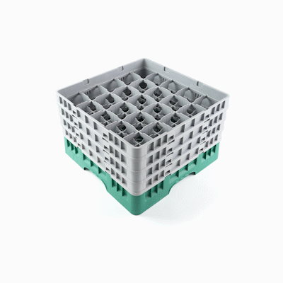 GREEN GLASS RACK - 25 COMPARTMENTS, 1 FULL AND 3 HALF DROP EXTENDERS