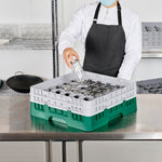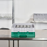 Clean Tek Professional Green Glass Rack - 36 Compartments, 1 Full Drop and 1 Half Drop Extender - 19 3/4